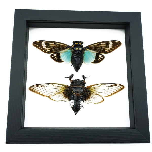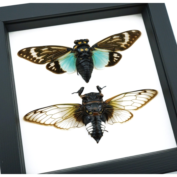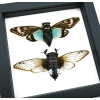 Framed Cicada Set Blue Clear Winged Cicadas Real Framed Insect Taxidermy Classic Black Display