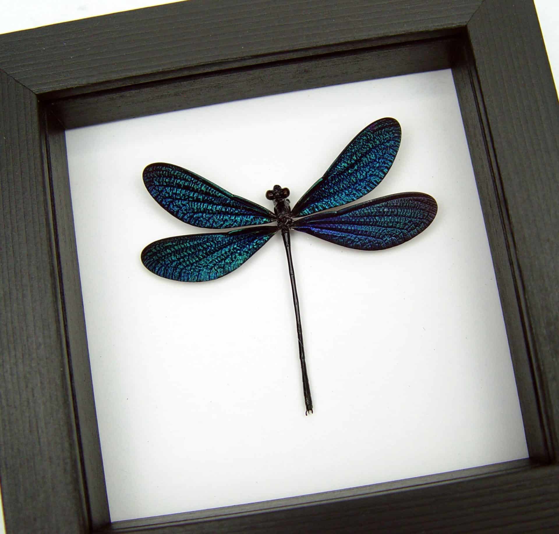 Framed Damselfly Aurora Borealis Green Damselfly Classic Black Display