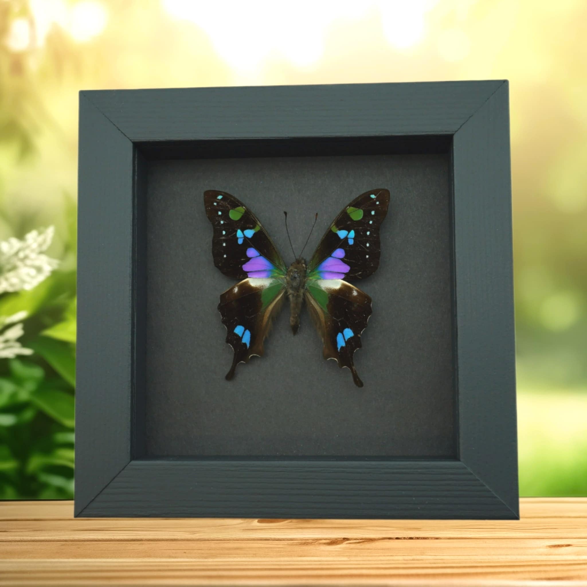 Framed Graphium Weiskei Butterfly Purple Spotted Swallowtail Moonlight Display