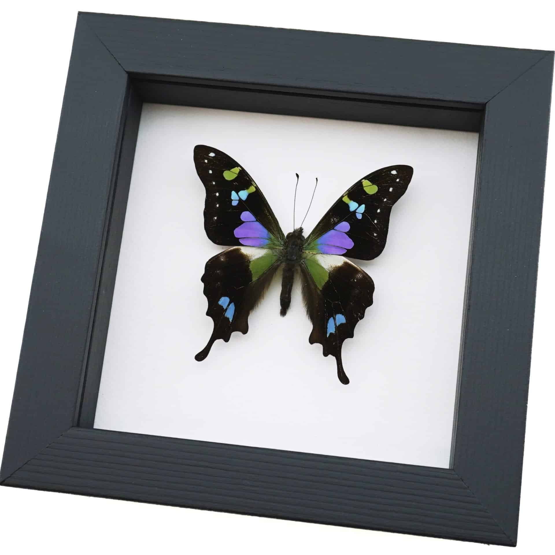 Framed Graphium Weiskei Butterfly Purple Spotted Swallowtail Taxidermy Classic Black Display