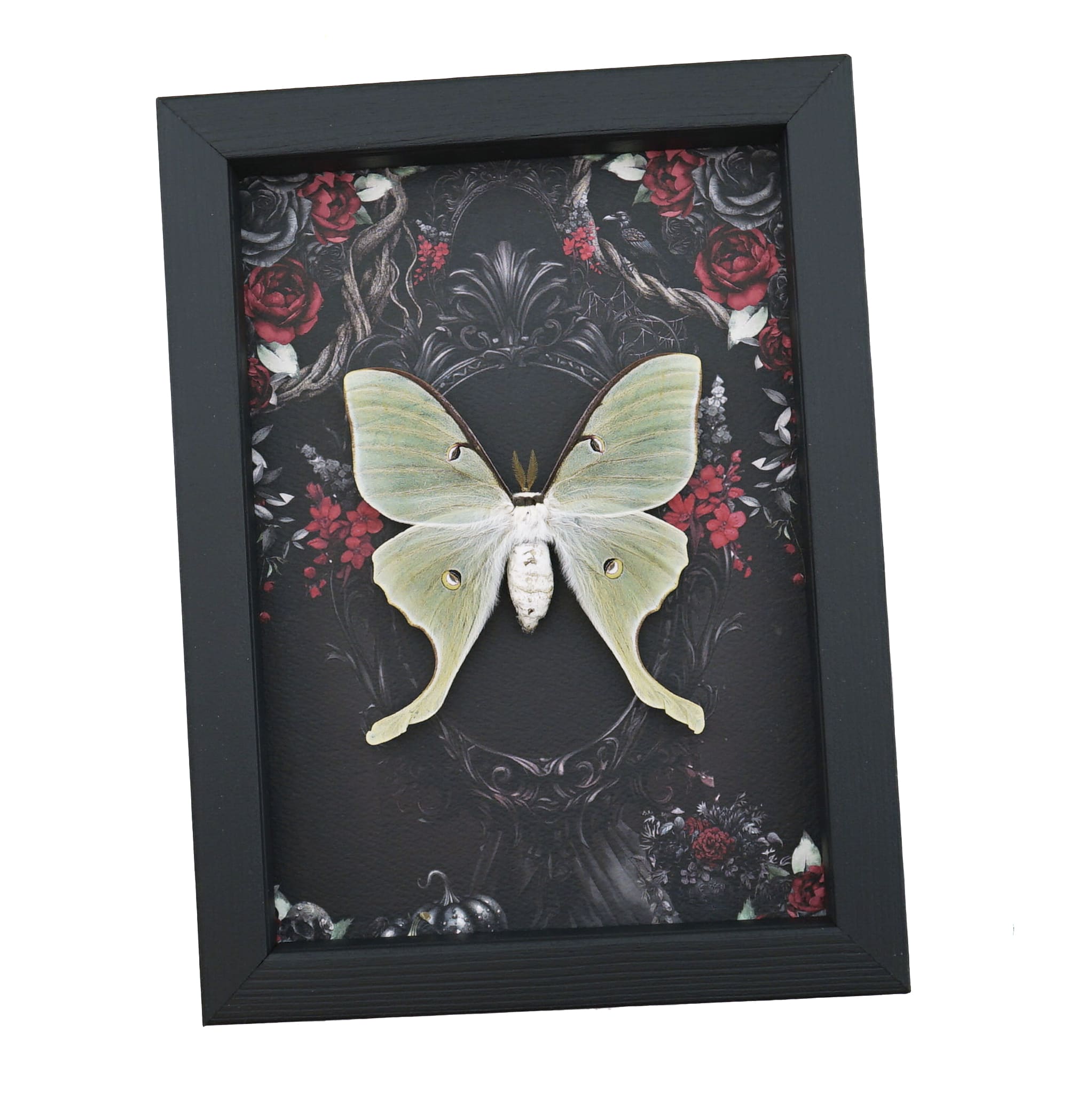Framed Luna Moth Gothic Black Roses Actias luna Framed Taxidermy Display