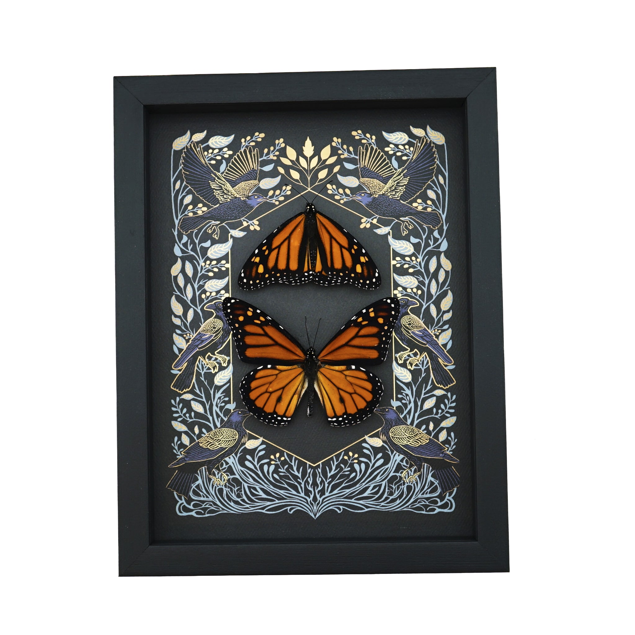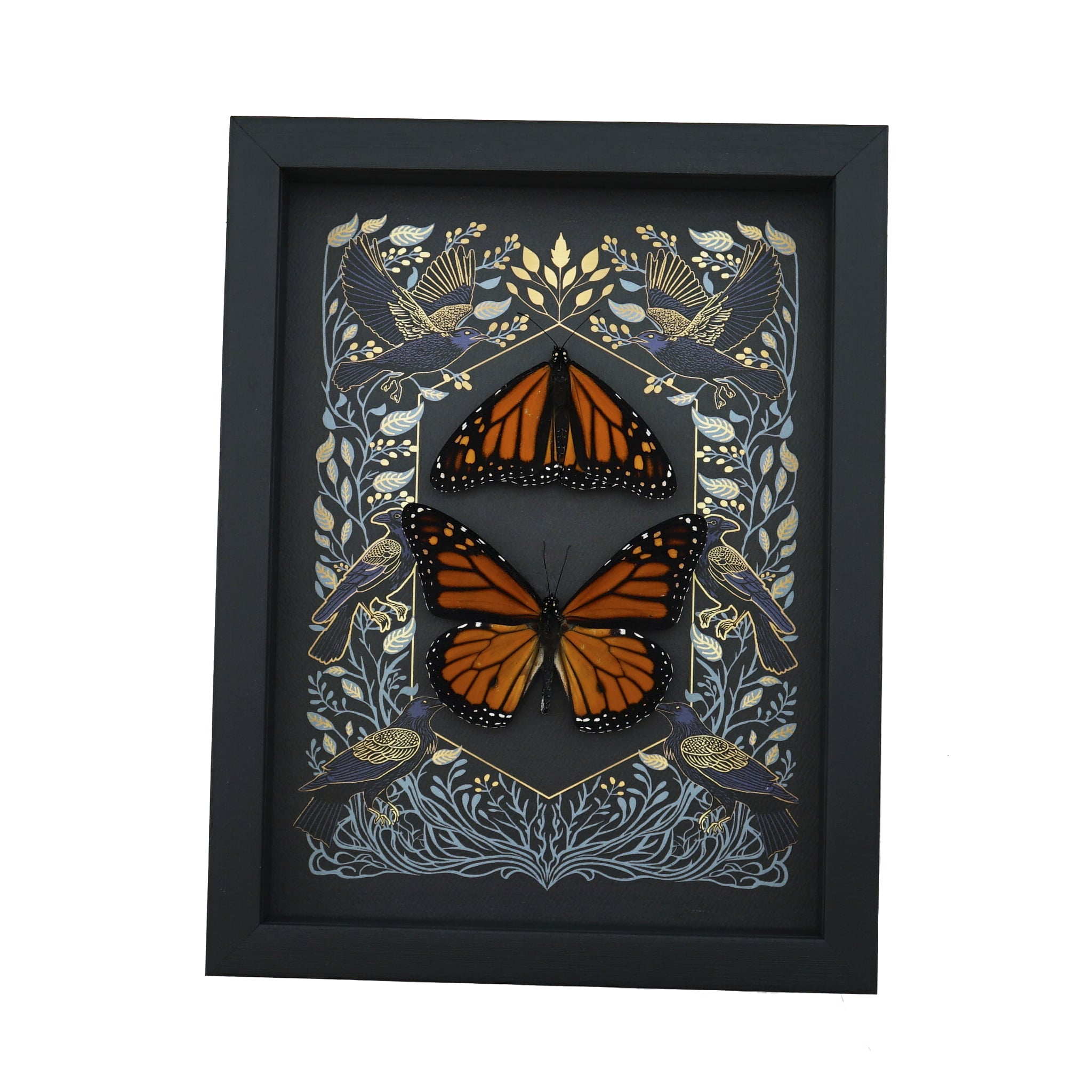 Framed Monarch Butterflies Gothic Ravens Danaus Plexippus Butterfly Set Taxidermy Display