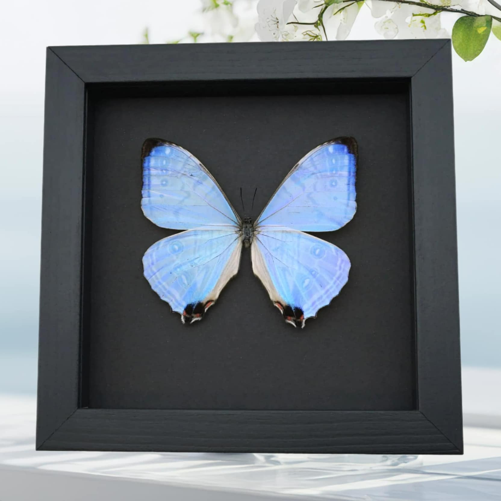 Framed Mother of Pearl Butterfly Morpho sulkowski Taxidermy Moonlight Display
