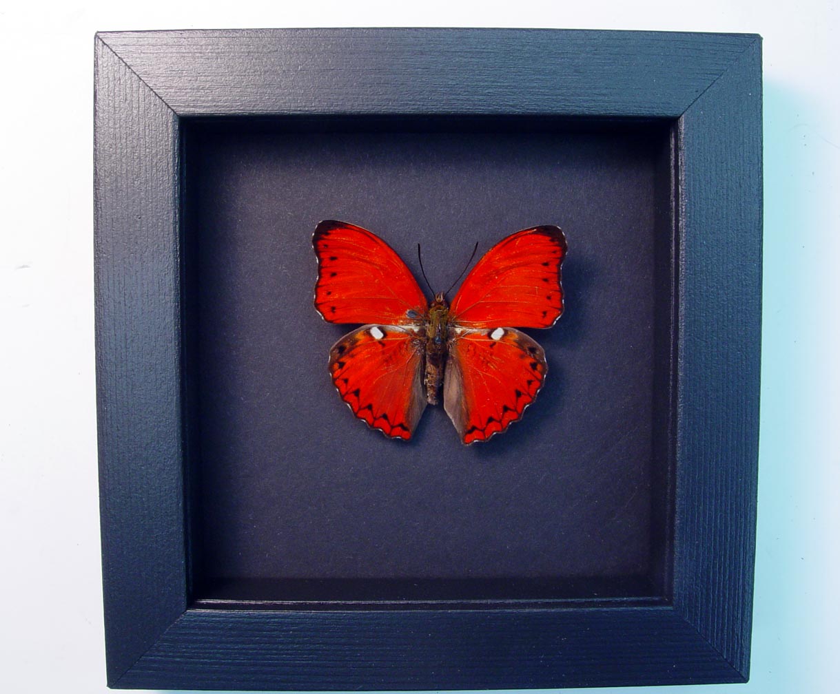 Framed Scalloped Red Glider Cymothoe excelsa Moonlight Display