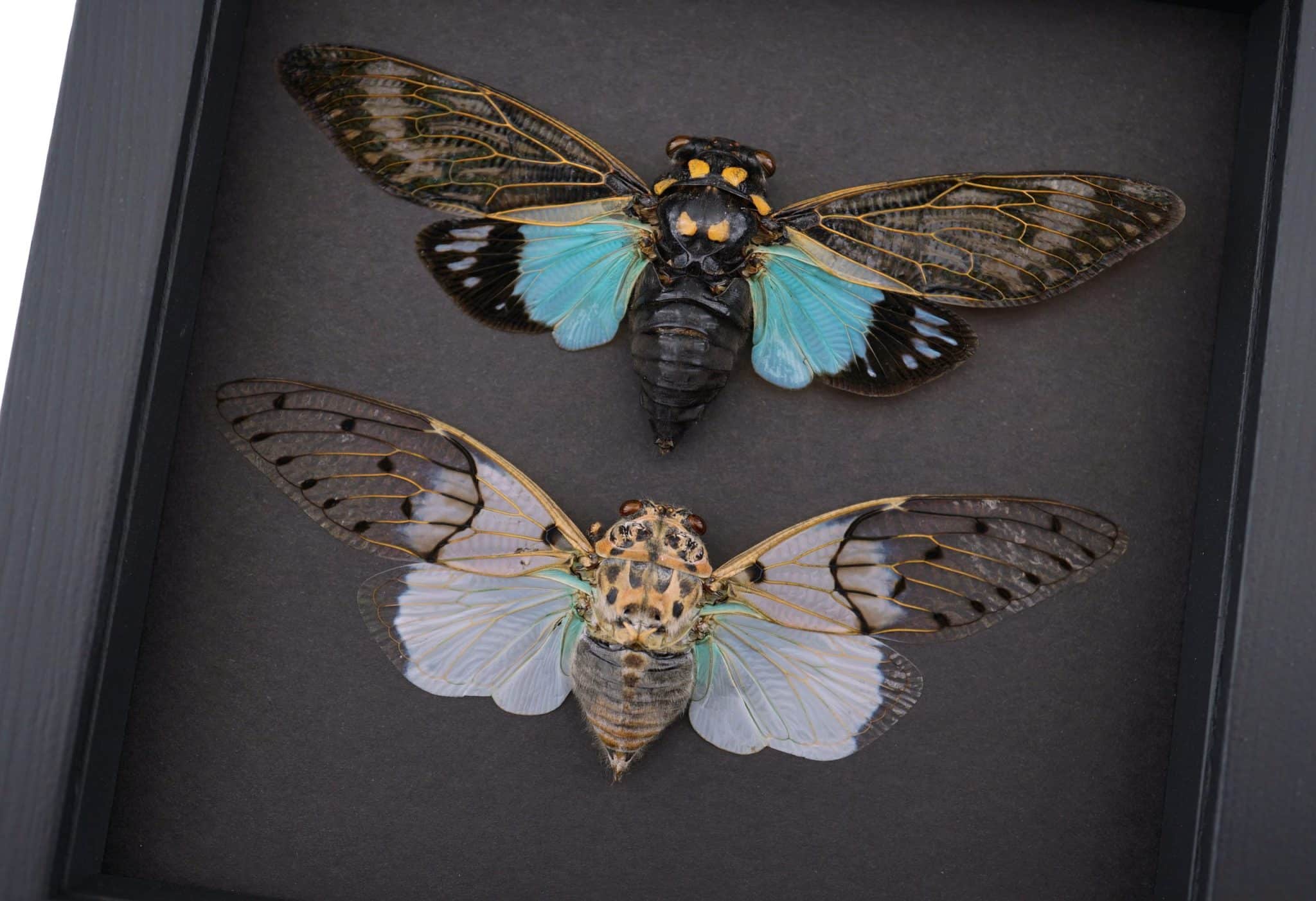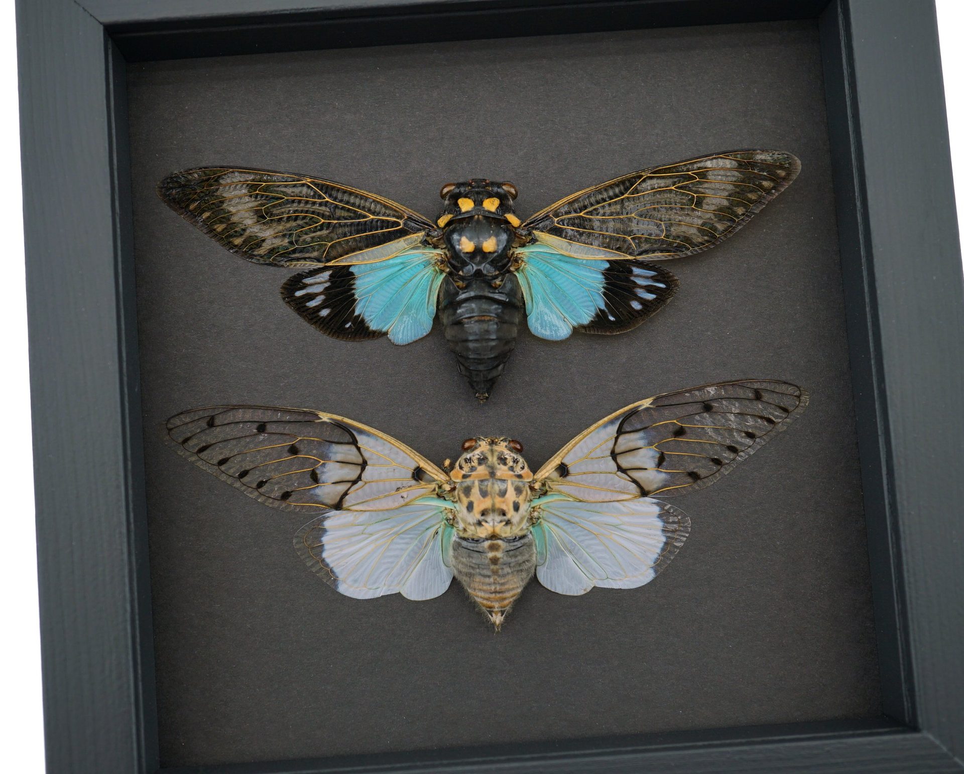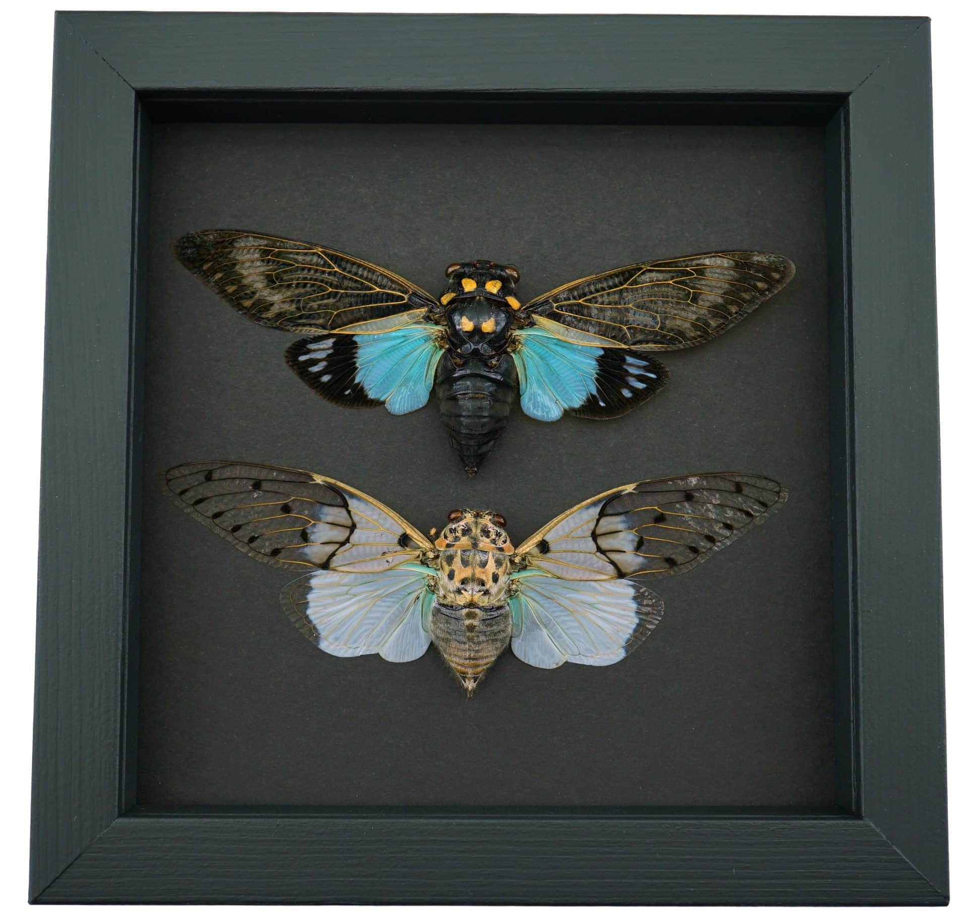 Ghost Cicada Collection Blue White Cicadas Framed Taxidermy Moonlight Display
