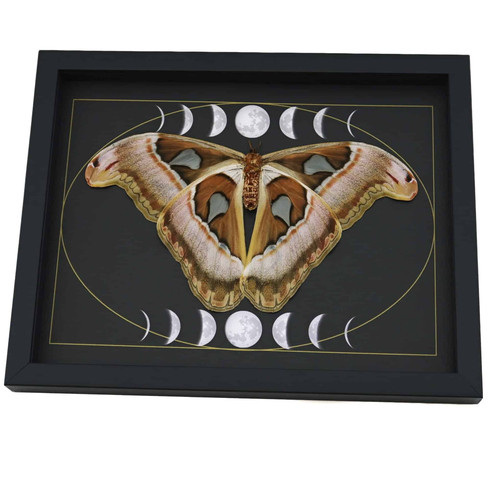 Giant Resting Moth Phases of the Moon Attacus lorquinii Female verso Gothic Framed Taxidermy Display