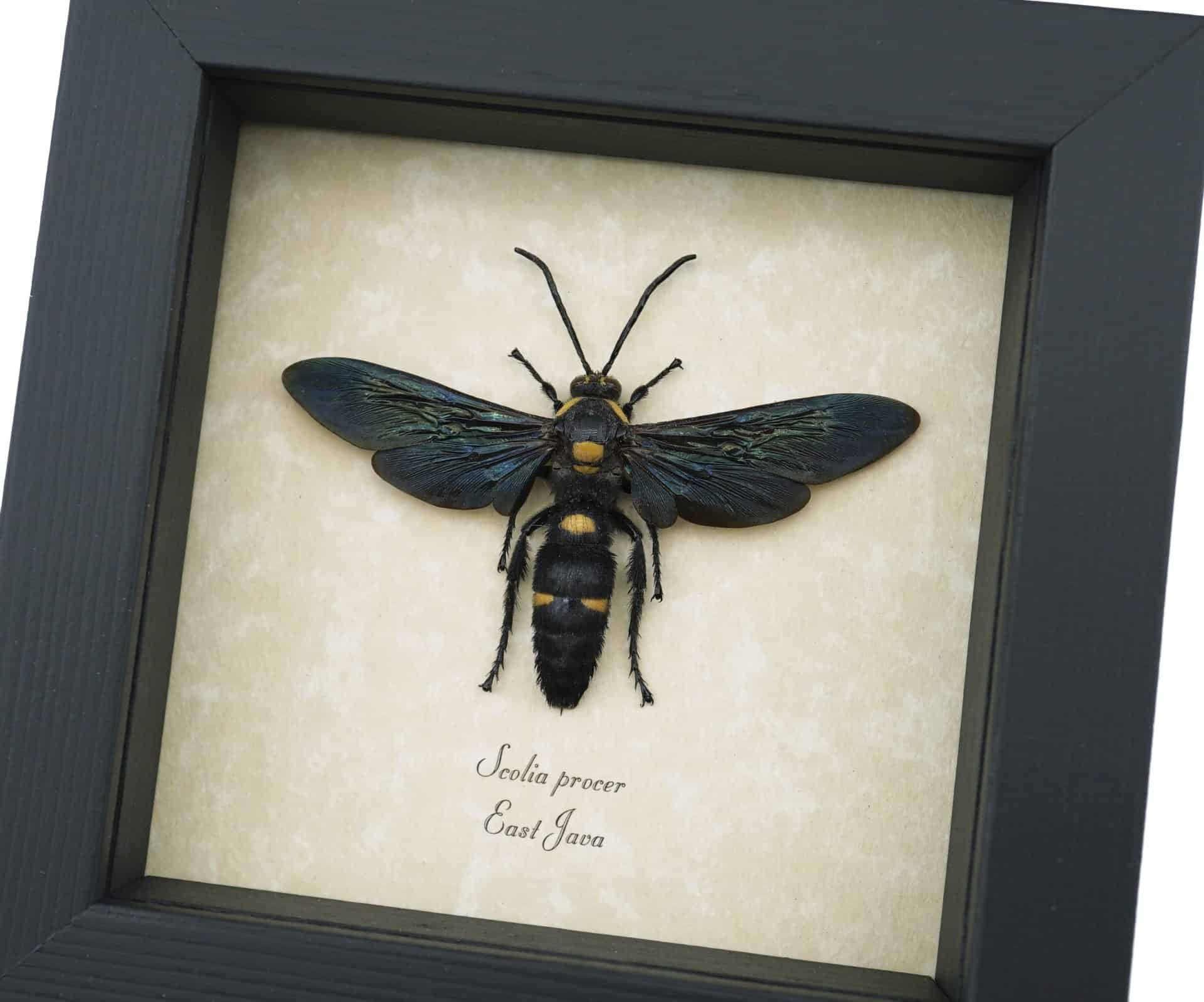 Giant Solitary Wasp Megascolia procer Male Real Framed Taxidermy Display
