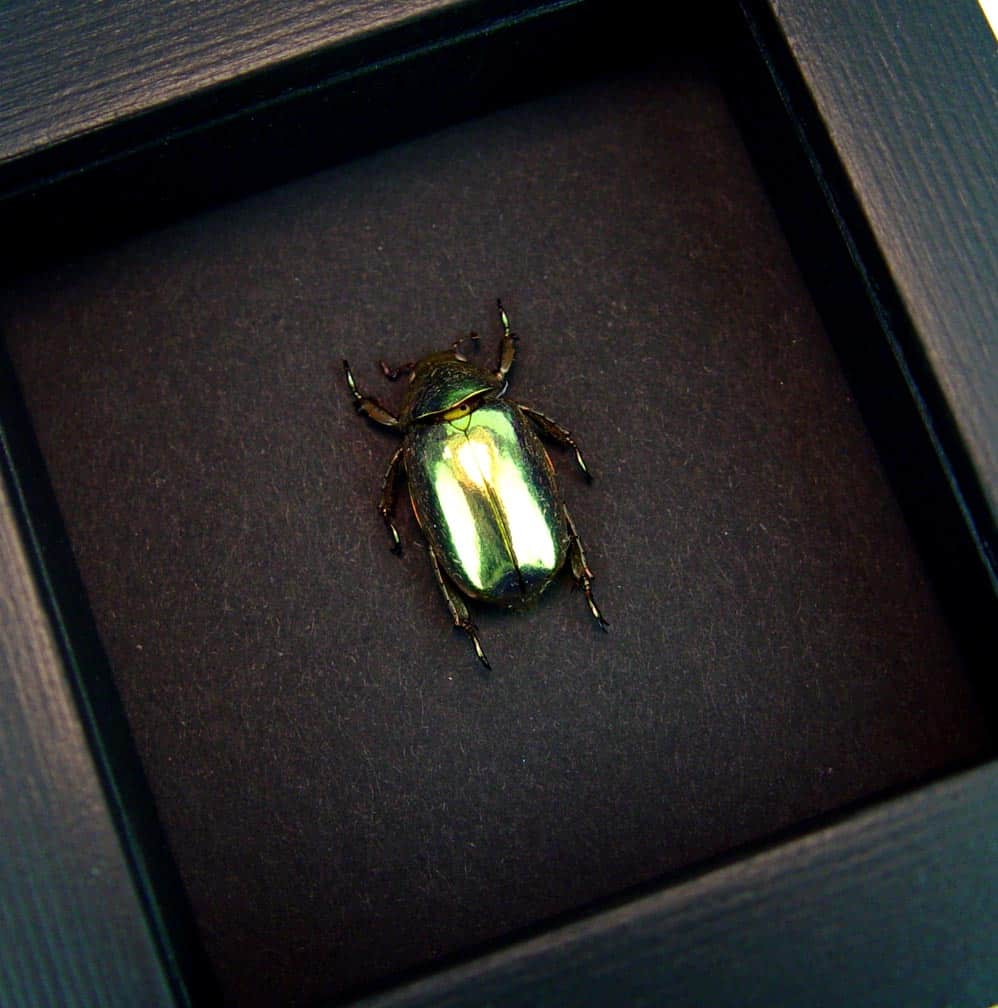 Gold Scarab Beetle Framed Chrysina resplendens Moonlight Display