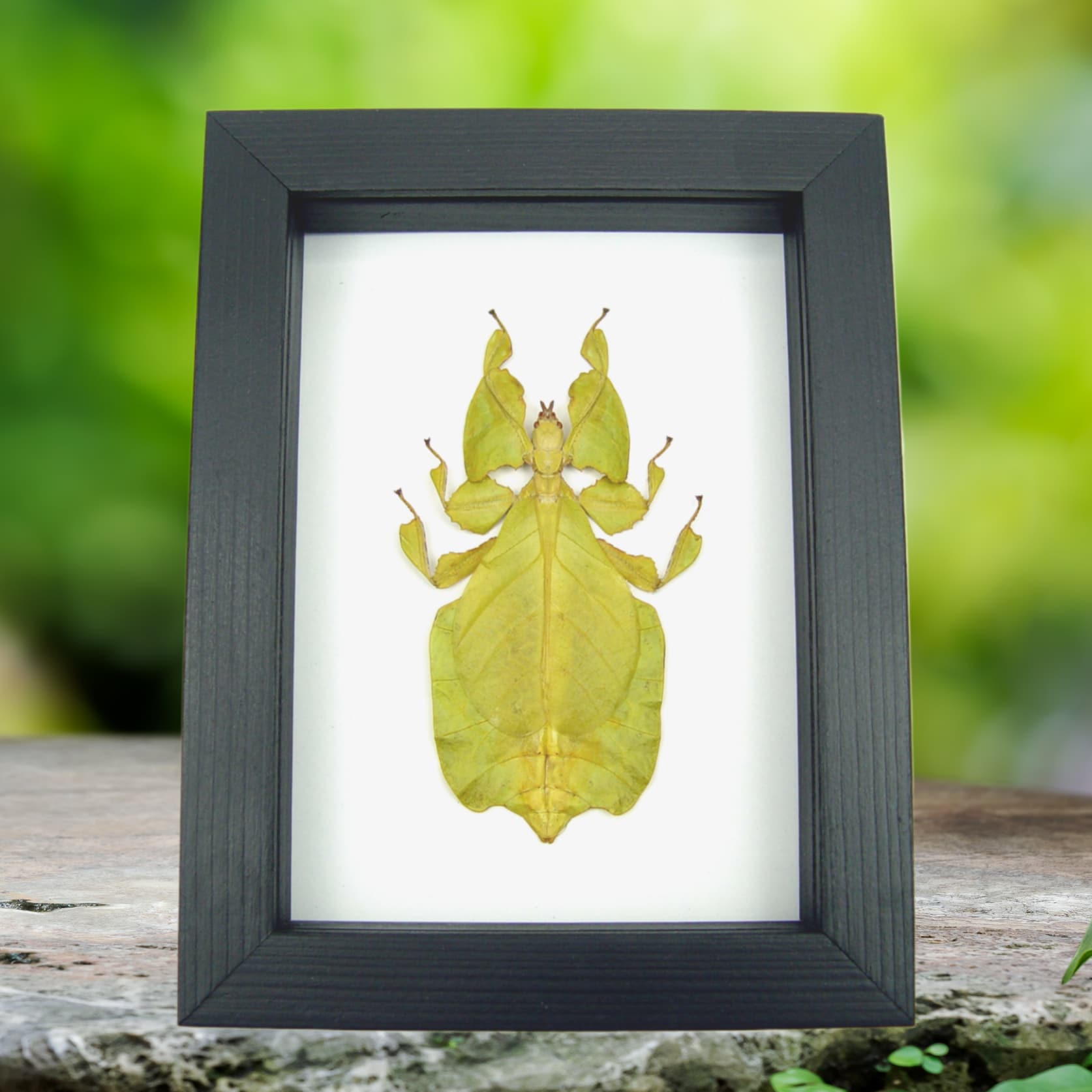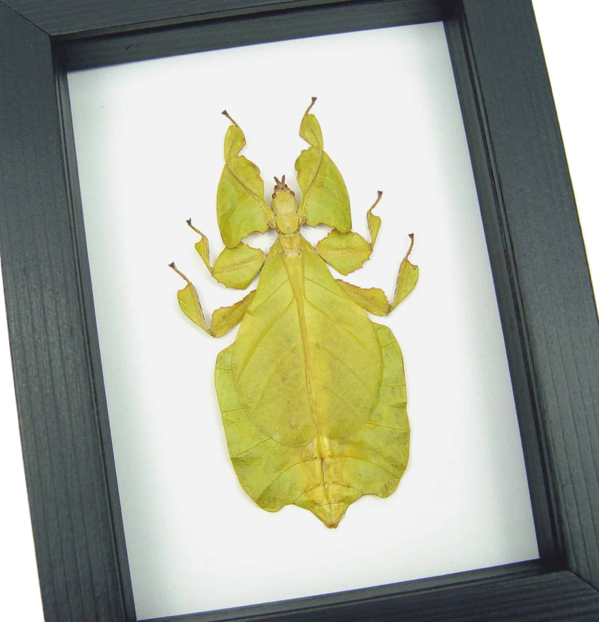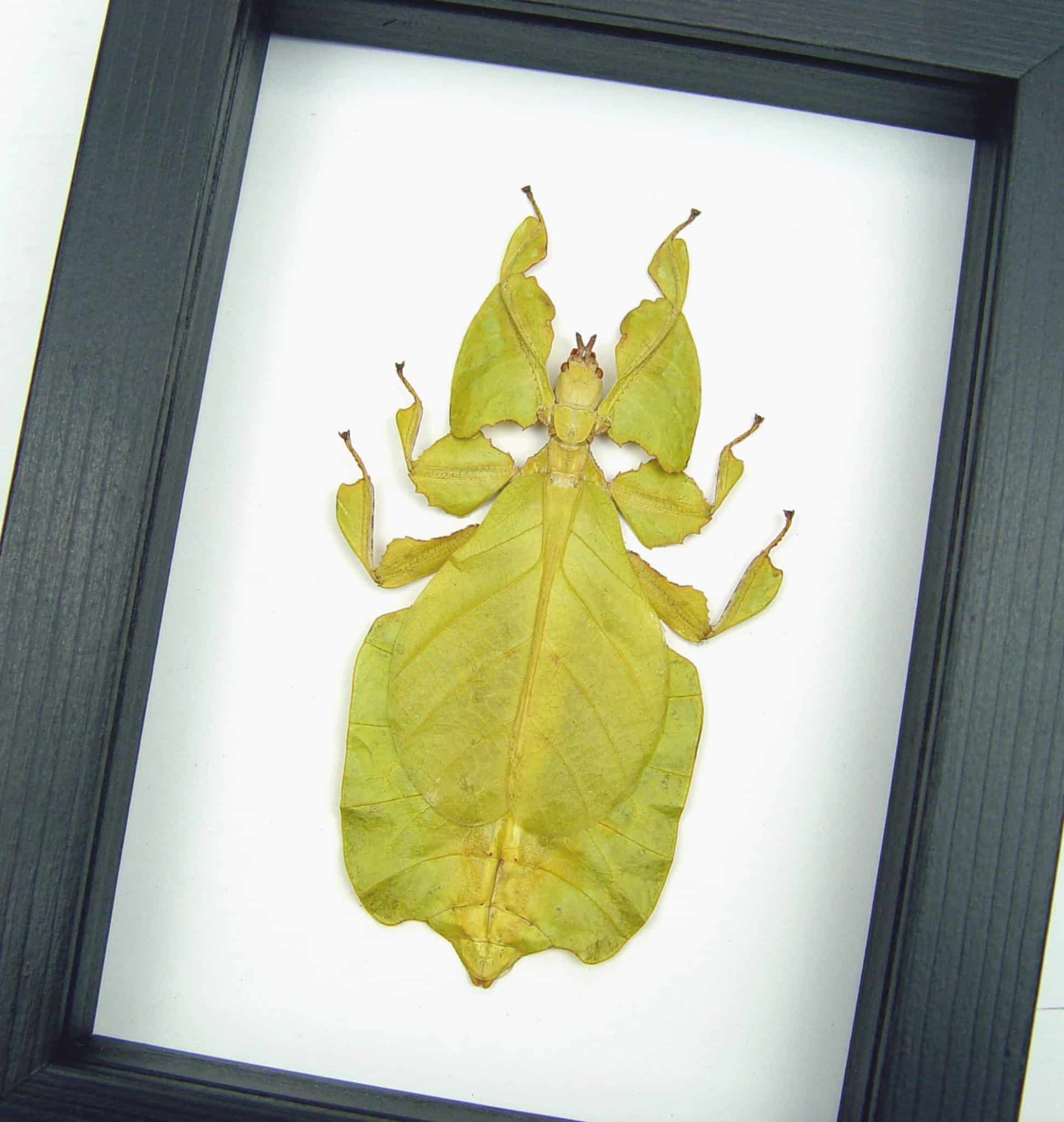 Yellow Green Leaf Insect Phyllium Pulchrifolium Female Framed Classic Black Display