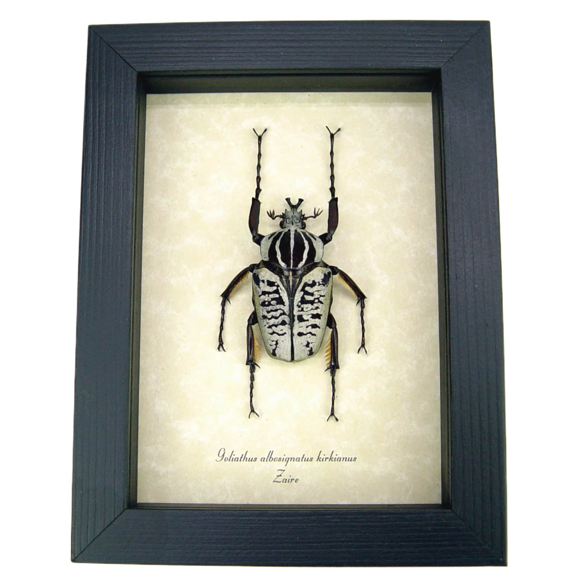 Real Framed African Beetle Goliathus albosignatus kirkianus Taxidermy Display