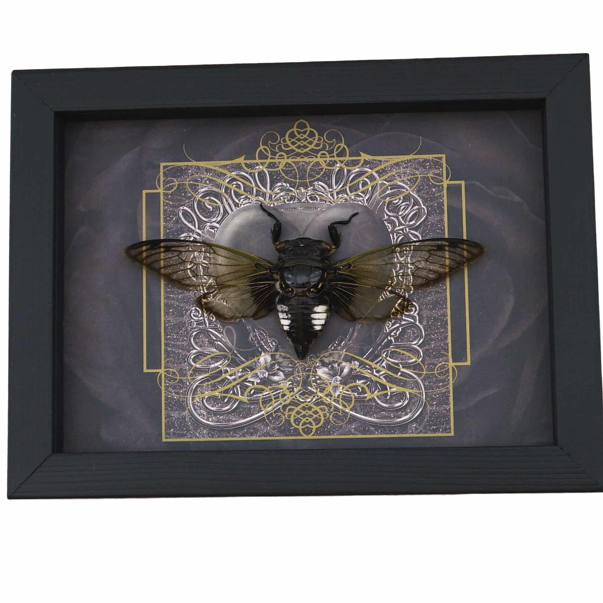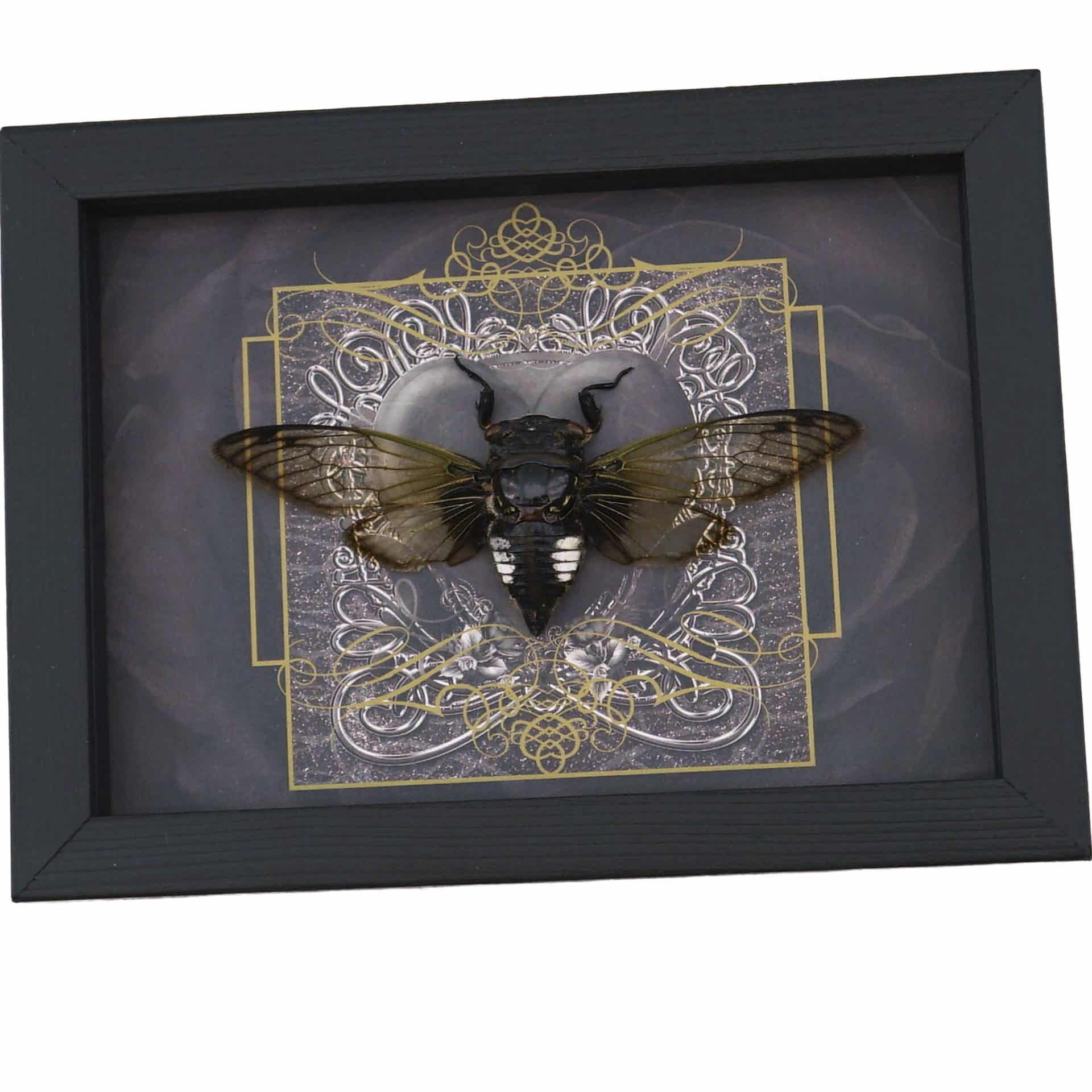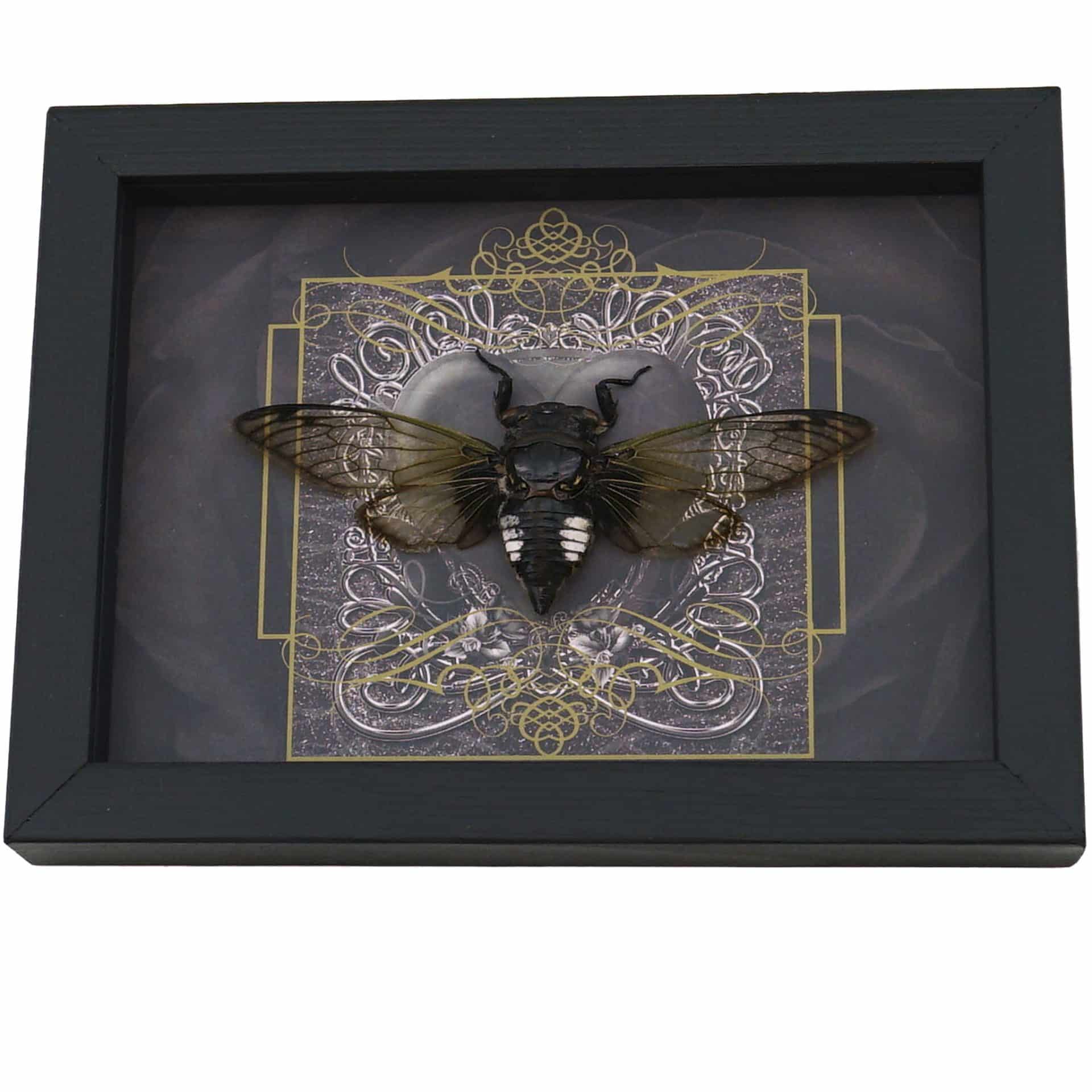 Gothic Black Heart Cicada Cryptotympana acuta Framed Insect Taxidermy Display