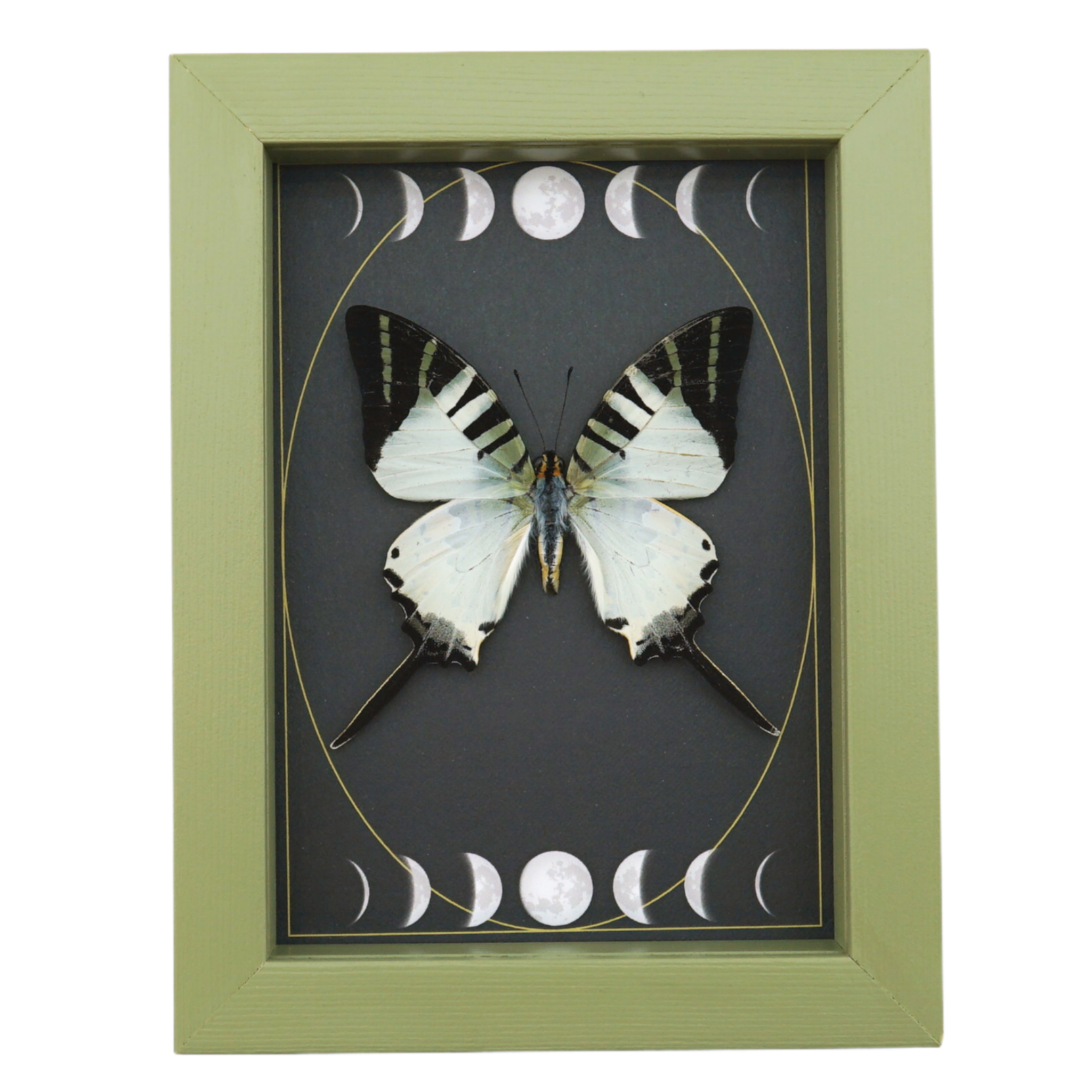 Graphium antiphates Butterfly Framed White Swallowtail Moon Phases Taxidermy Sage Green Display