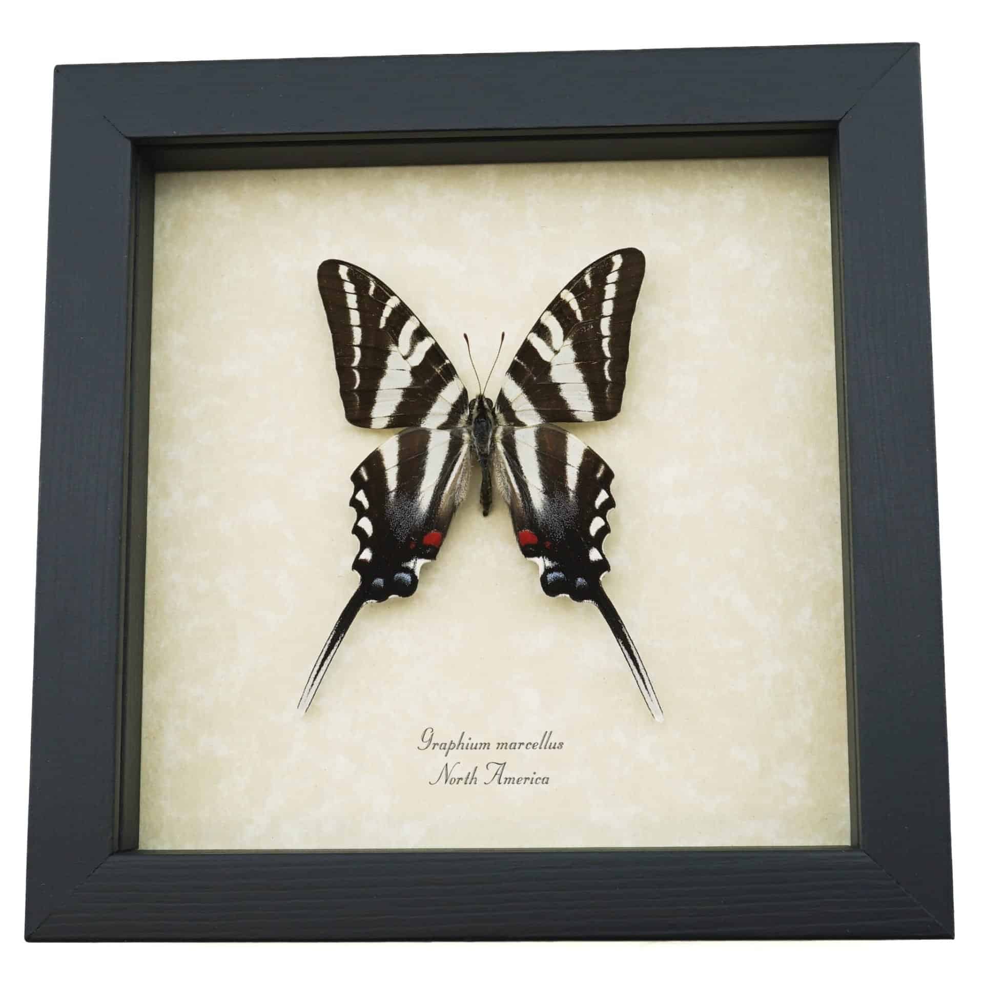 Graphium Marcellus Large Zebra Swallowtail Butterfly Framed Taxidermy Display