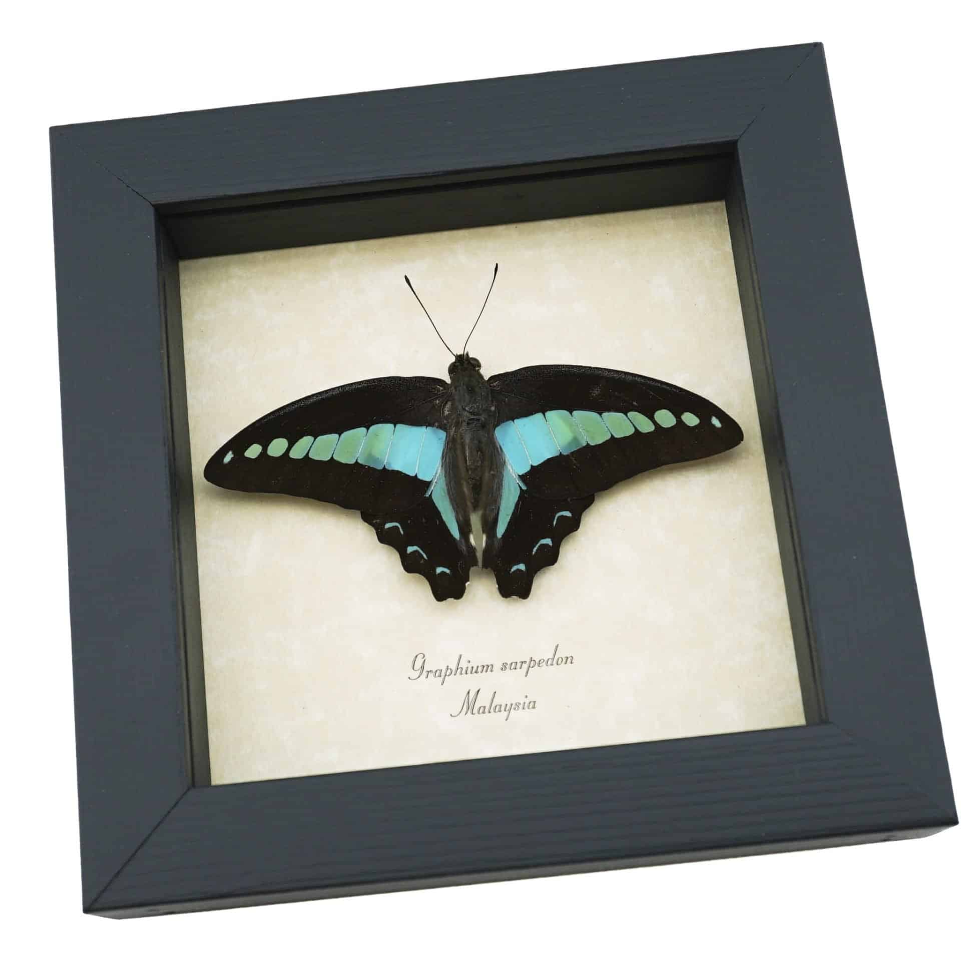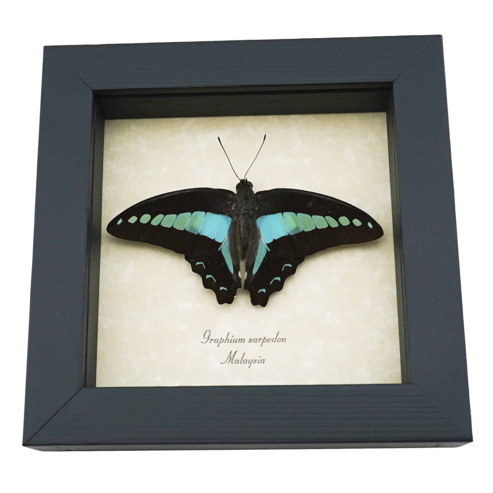 Graphium sarpedon Resting Pose Butterfly Blue triangle Framed Taxidermy Display