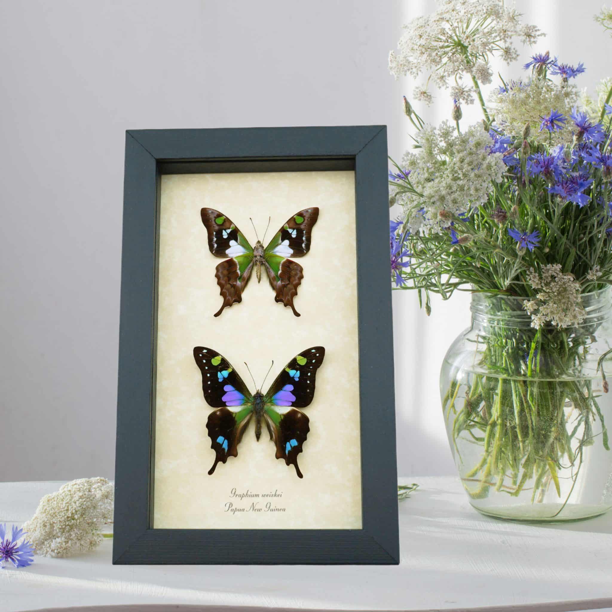 Graphium weiskei Butterfly Pair Purple Spotted Swallowtail Butterflies Framed Taxidermy Display