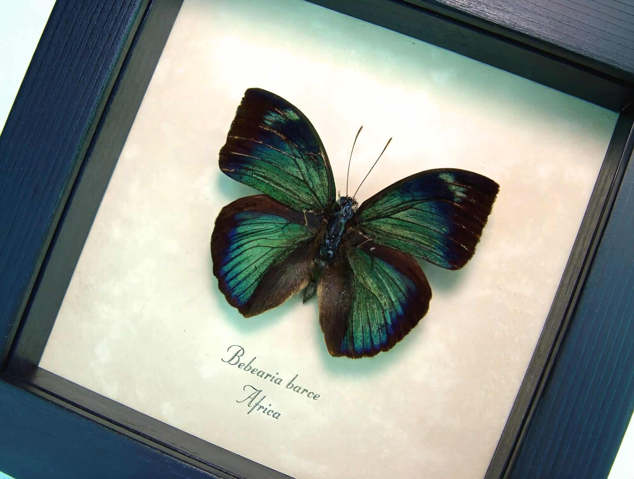 Green African Butterfly Bebearia barce Framed Taxidermy Display
