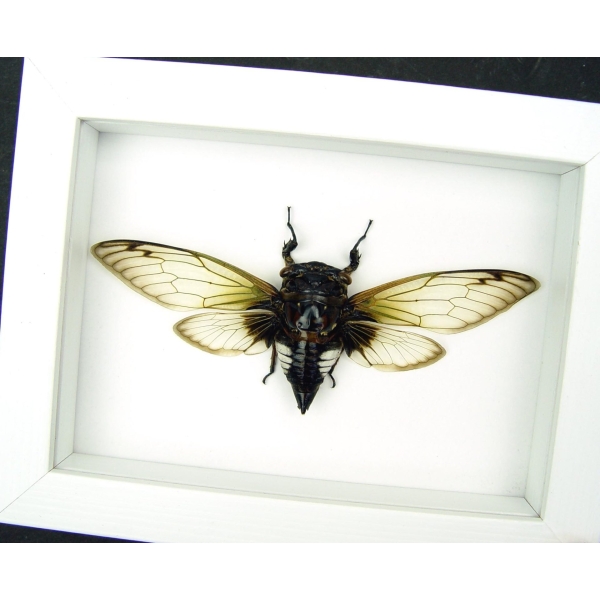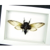 Green Clear Winged Banded Cicada Cryptotympana acuta Framed Taxidermy Vibrant White Display