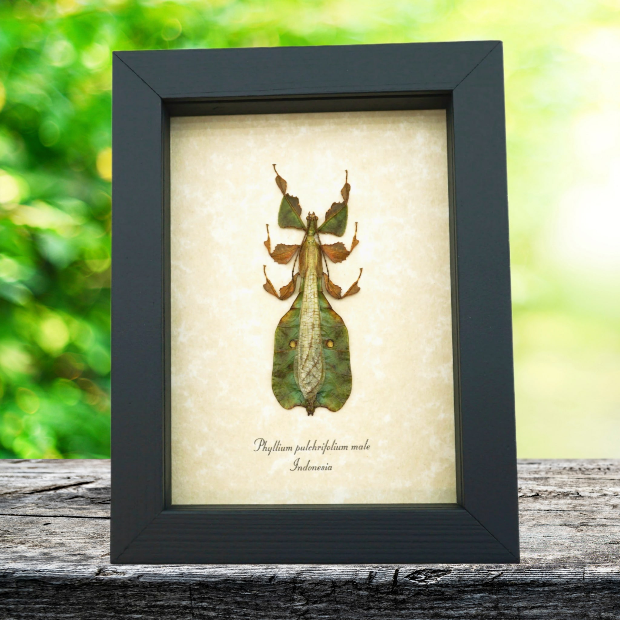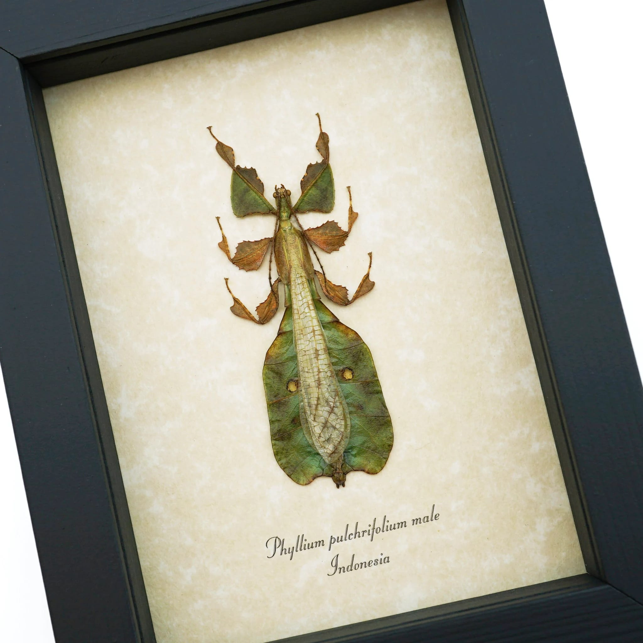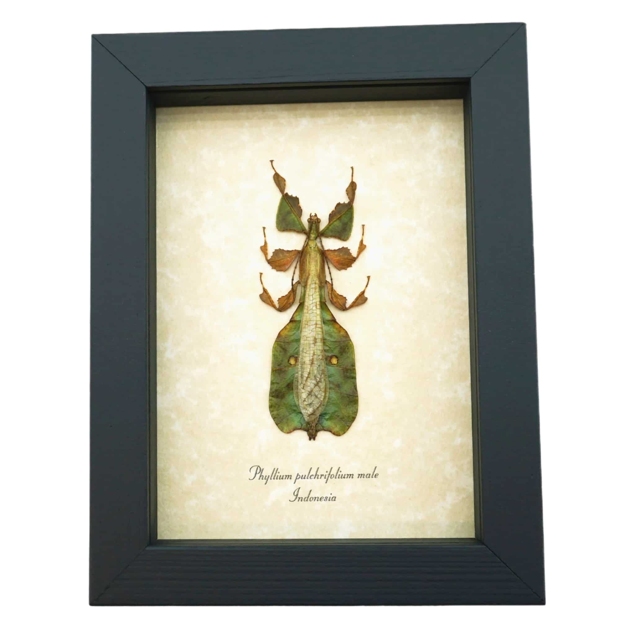Green Walking Leaf Insect Phyllium Pulchrifolium male Framed Taxidermy Display
