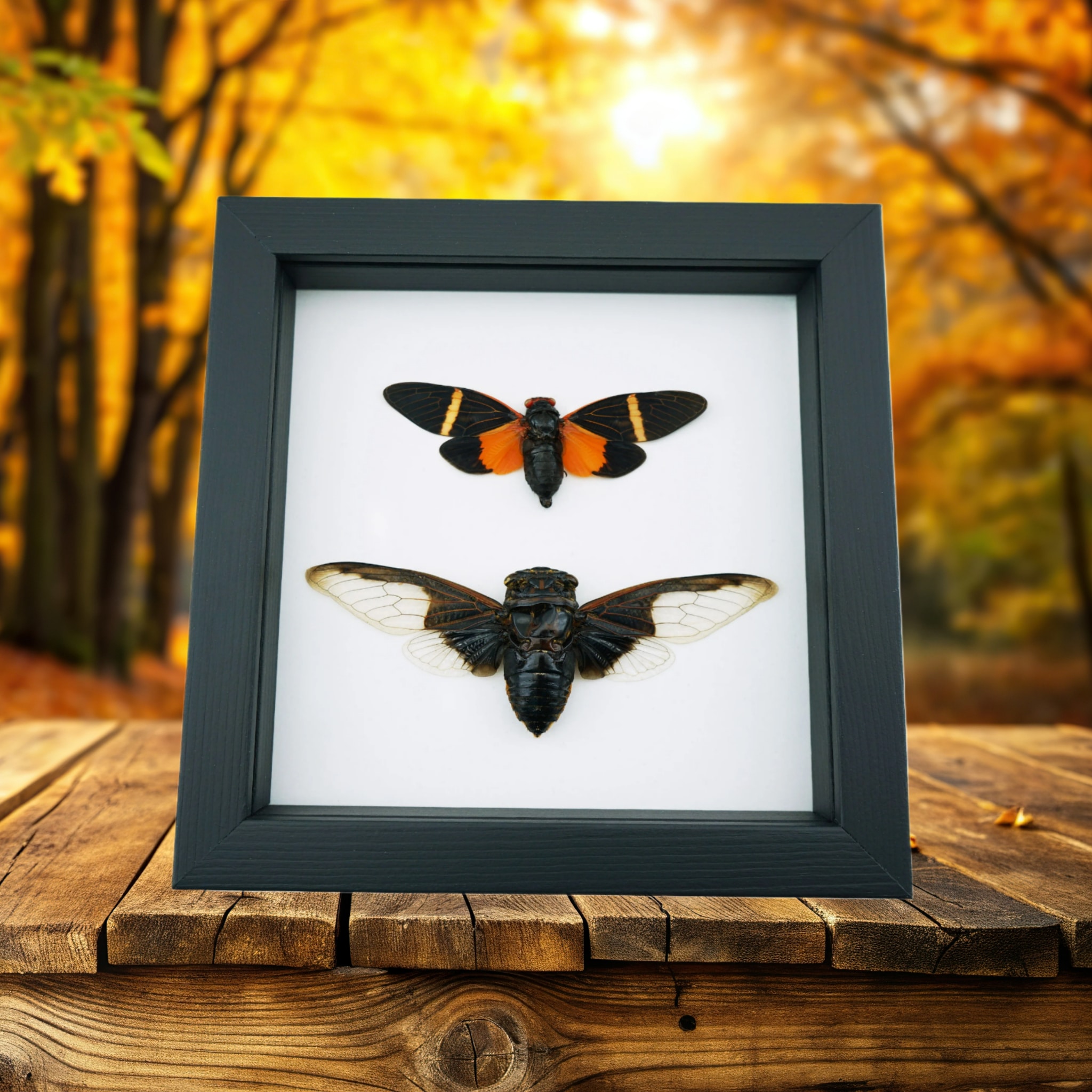 Halloween Bat Winged Cicada Set Orange Black Framed Insect Taxidermy Classic Black Display