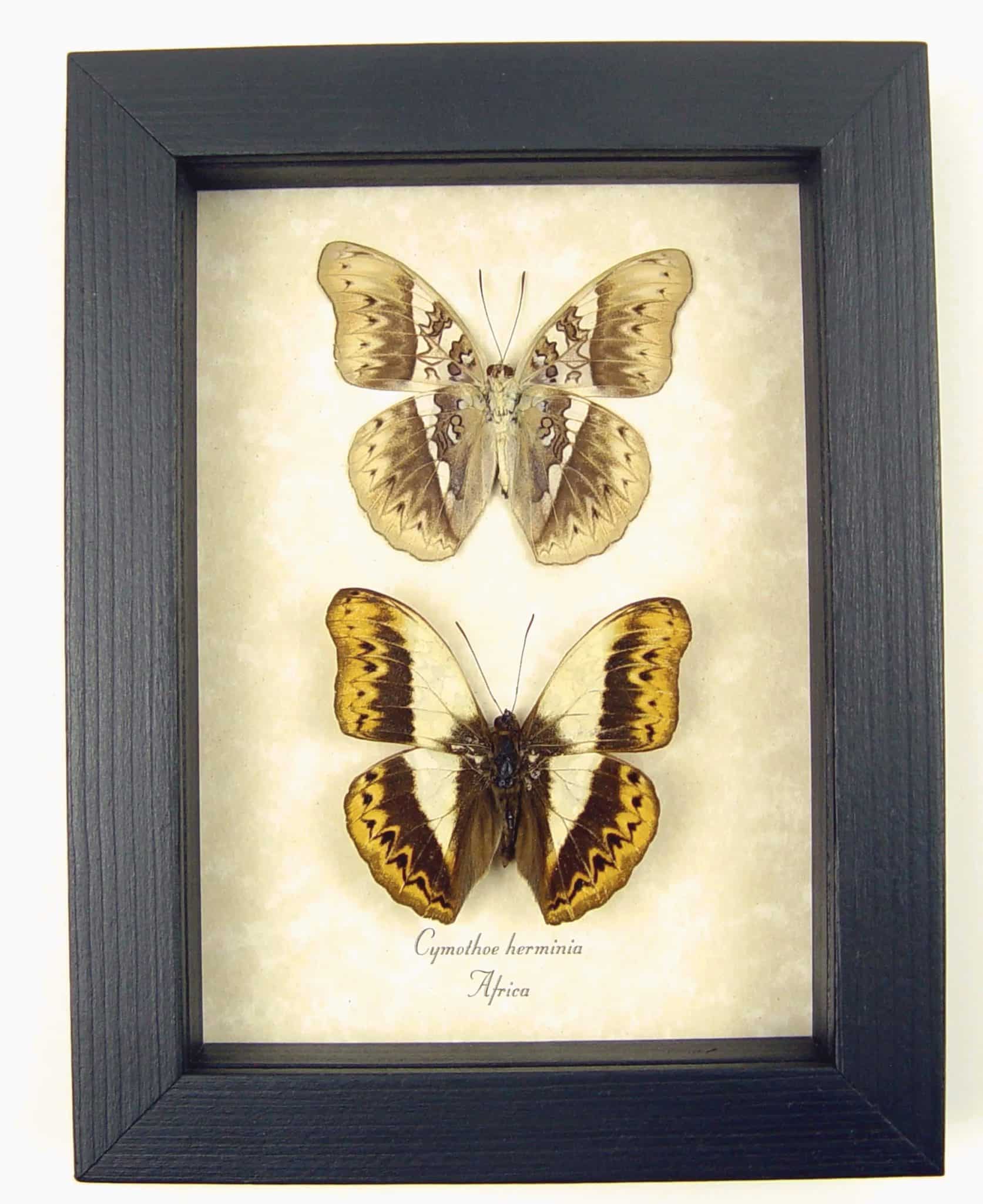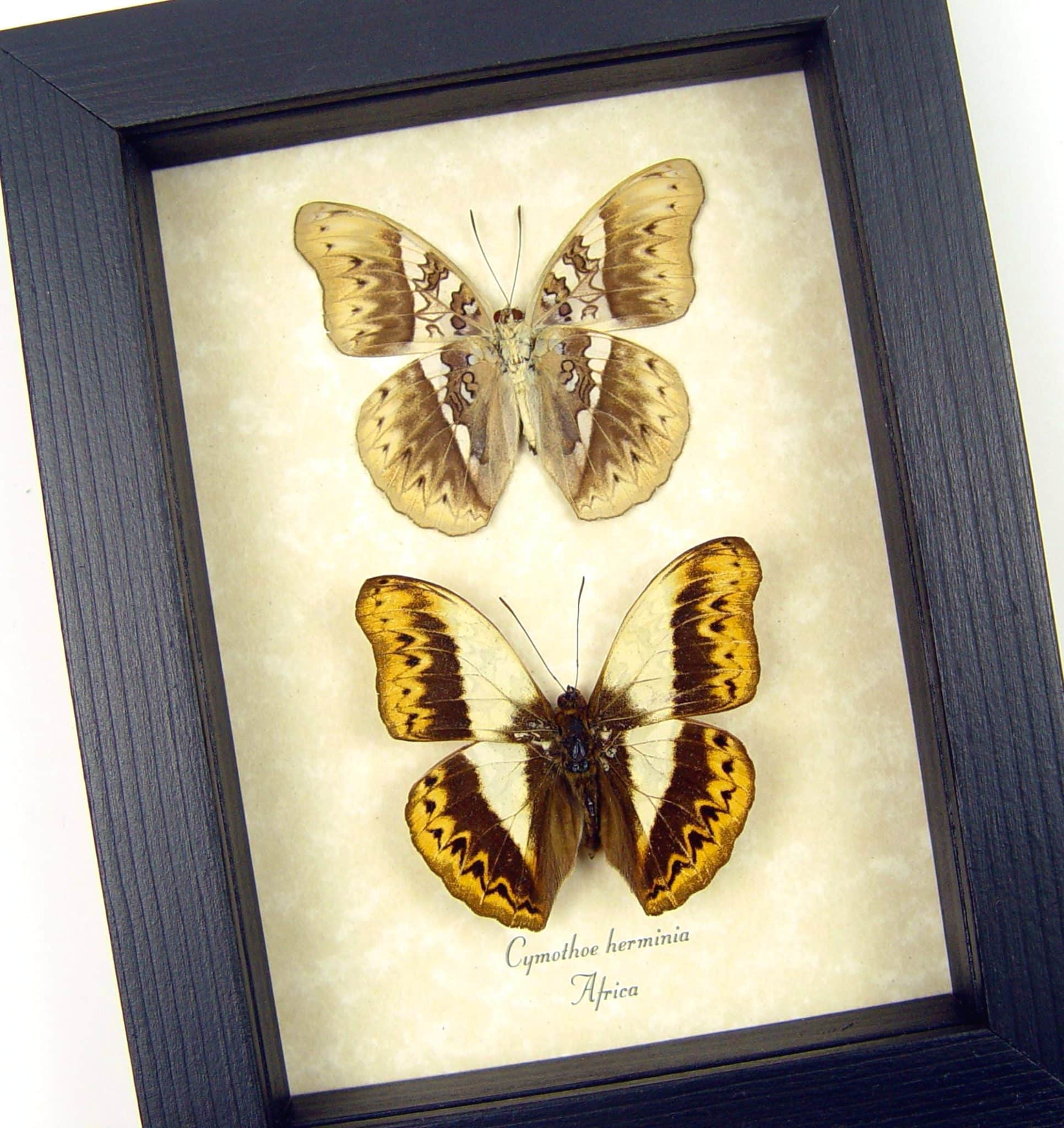 Real Framed African Butterflies Set Cymothoe Herminia Taxidermy Display