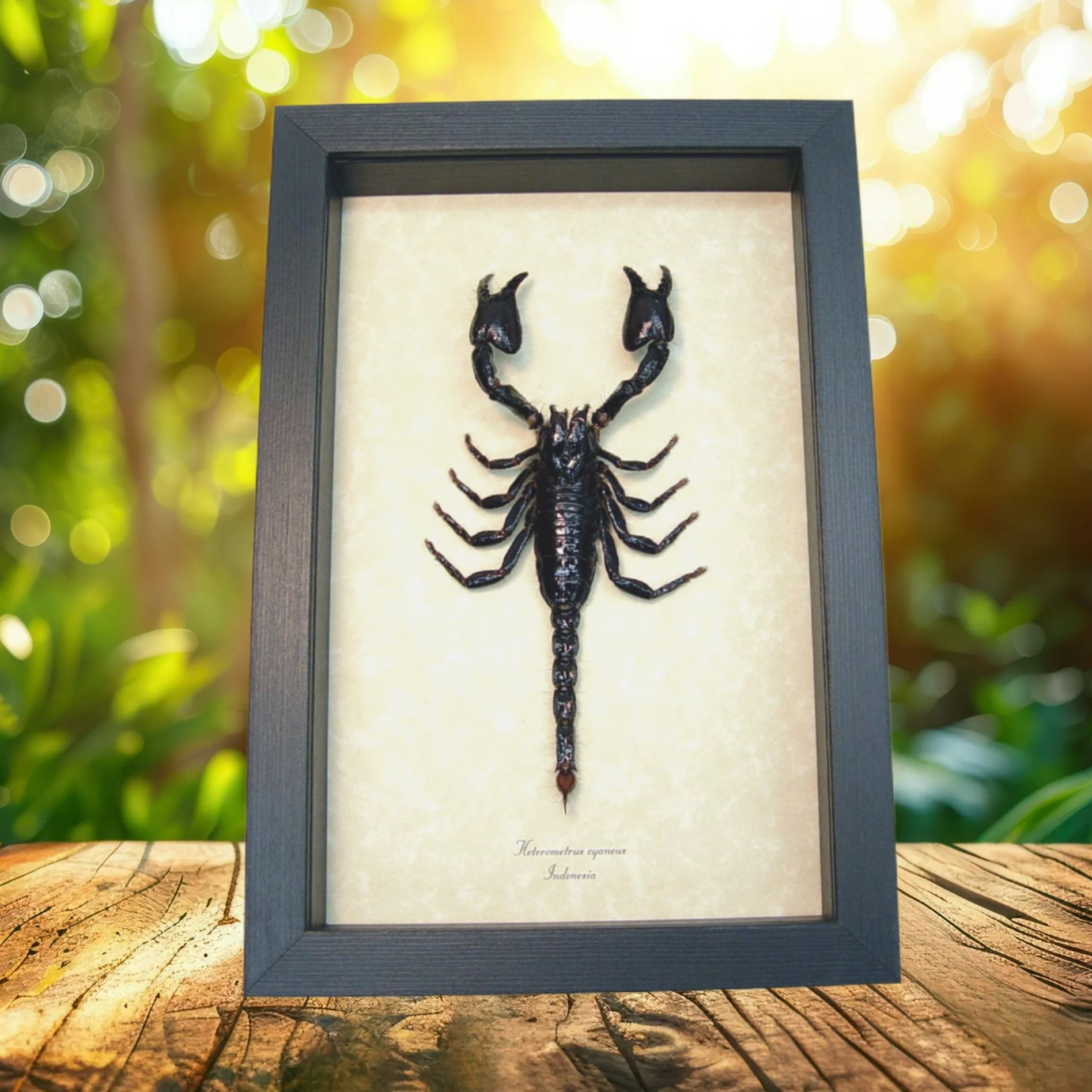 Real Framed Fighting Scorpion Heterometrus cyaneus Insect Taxidermy Display