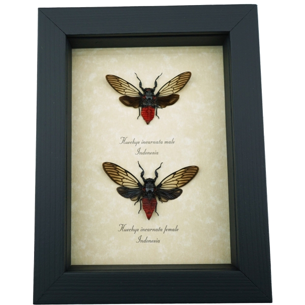 Huechys incarnata Pair Red Devil Cicadas Framed Insect Taxidermy Display