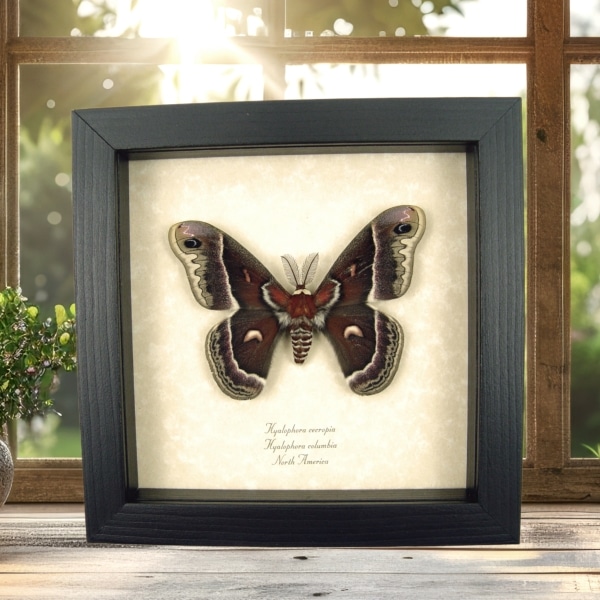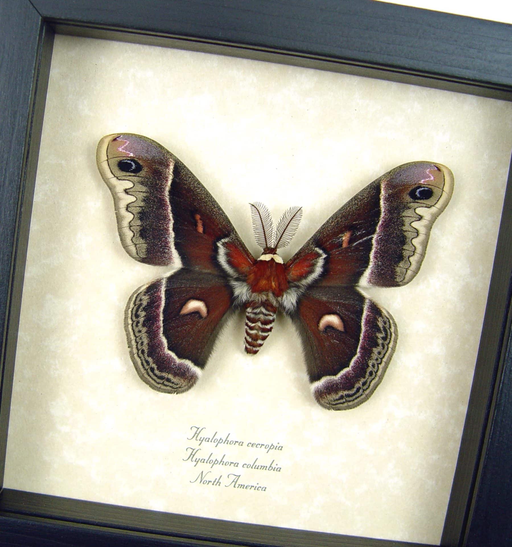 Hyalophora cecropia columbia Hybrid Moth Male Rare Framed Silk Moth Display