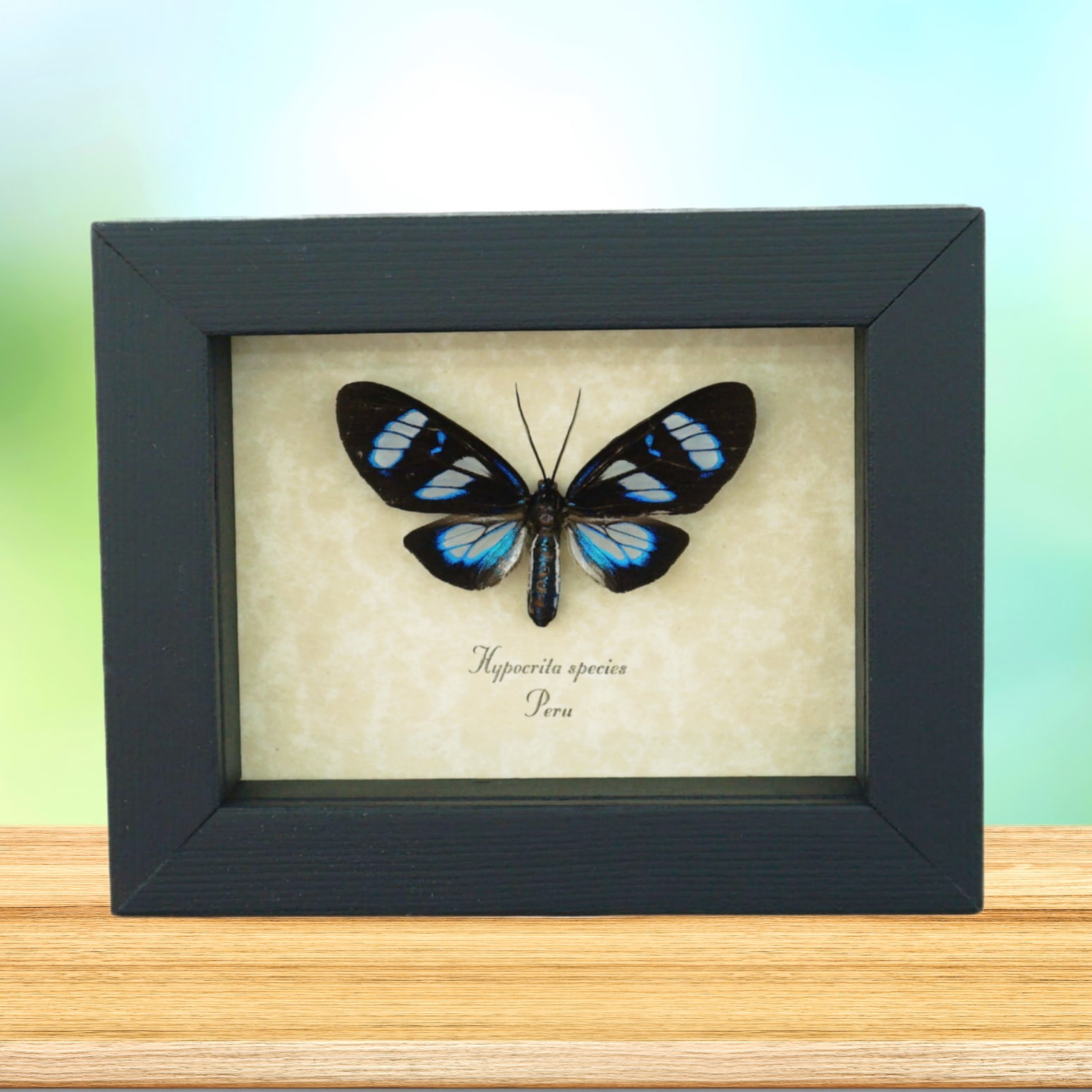 Electric Blue Day Flying Moth Hypocrita Sp Framed Taxidermy Display