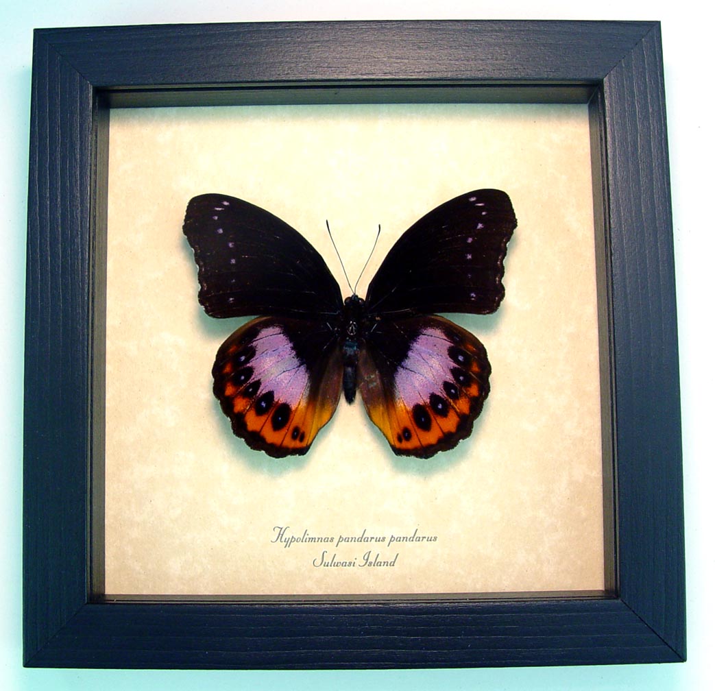Hypolimnas pandarus Purple Orange Real Framed Butterfly Taxidermy Display