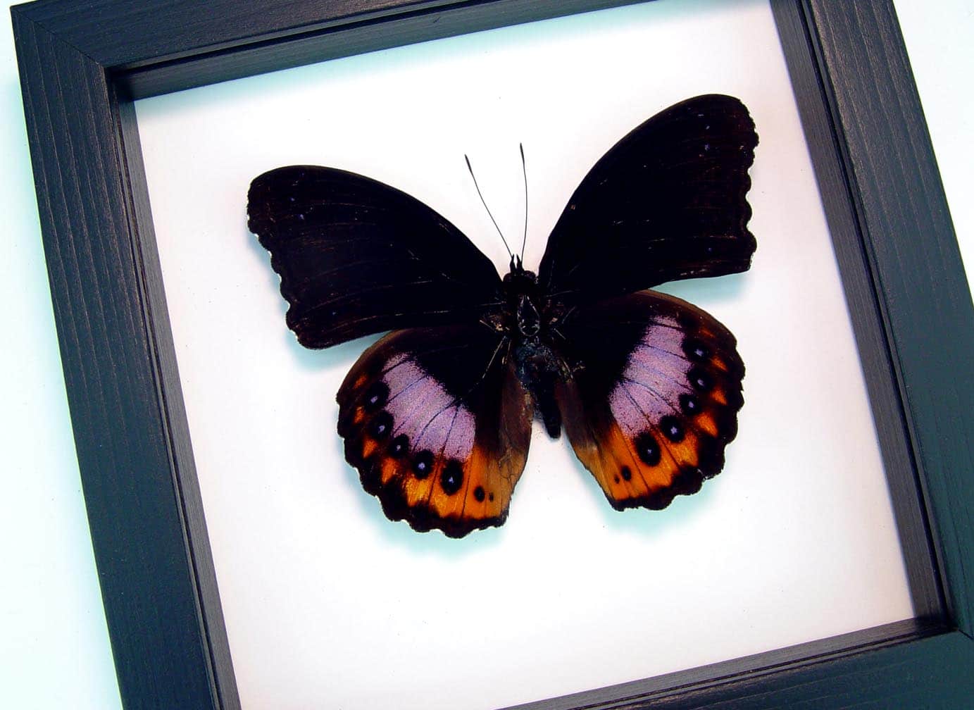 Hypolimnas pandarus Rare Purple Orange Butterfly Framed Taxidermy Classic Black Display