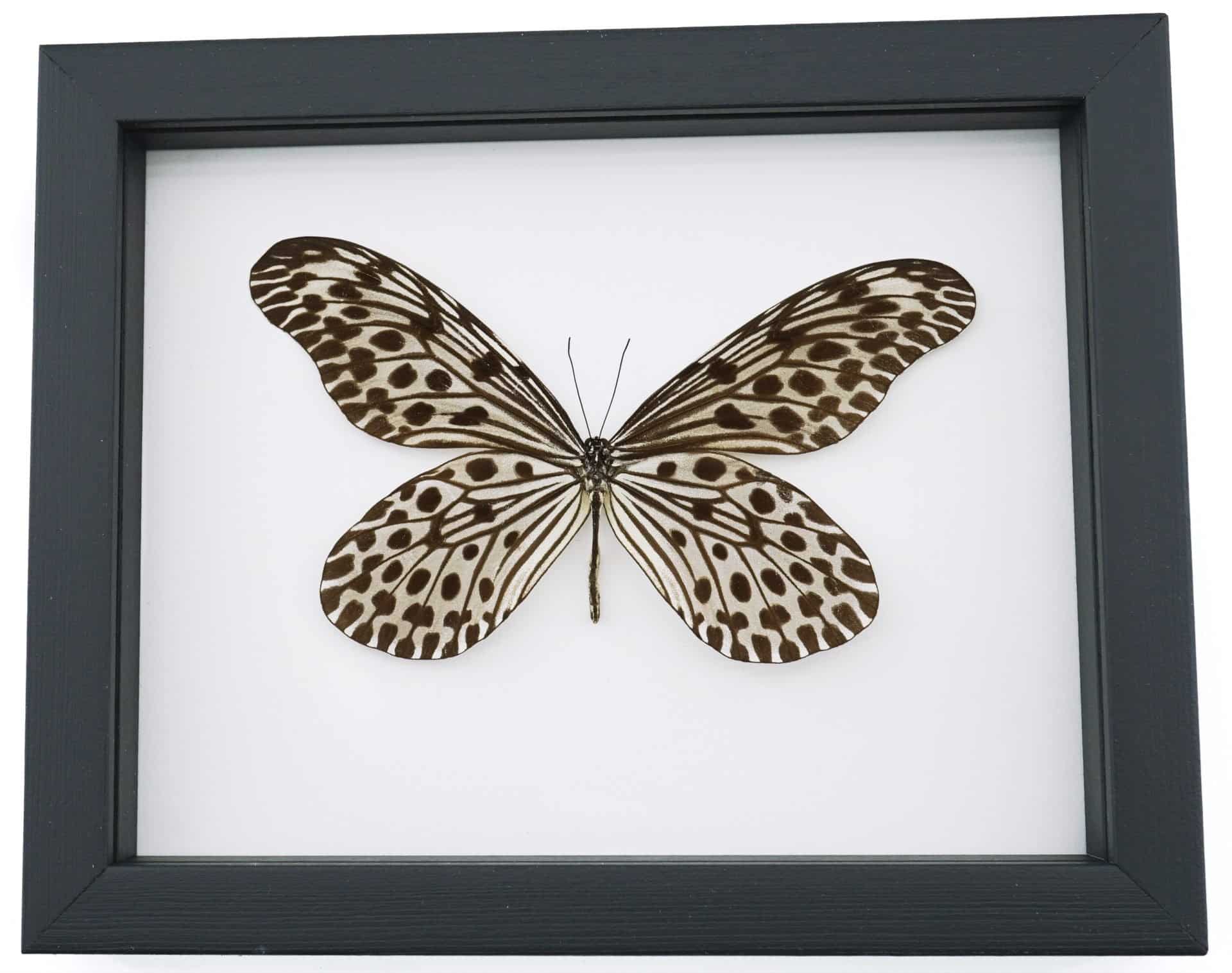Idea lynceus Spotted Rice Paper Butterfly Framed Taxidermy Classic Black Display