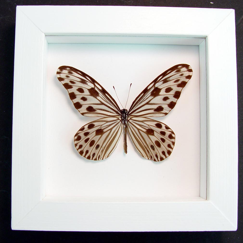 Ideopsis Gaura Perakana Female Framed Wood Nymph Butterfly Vibrant White Display