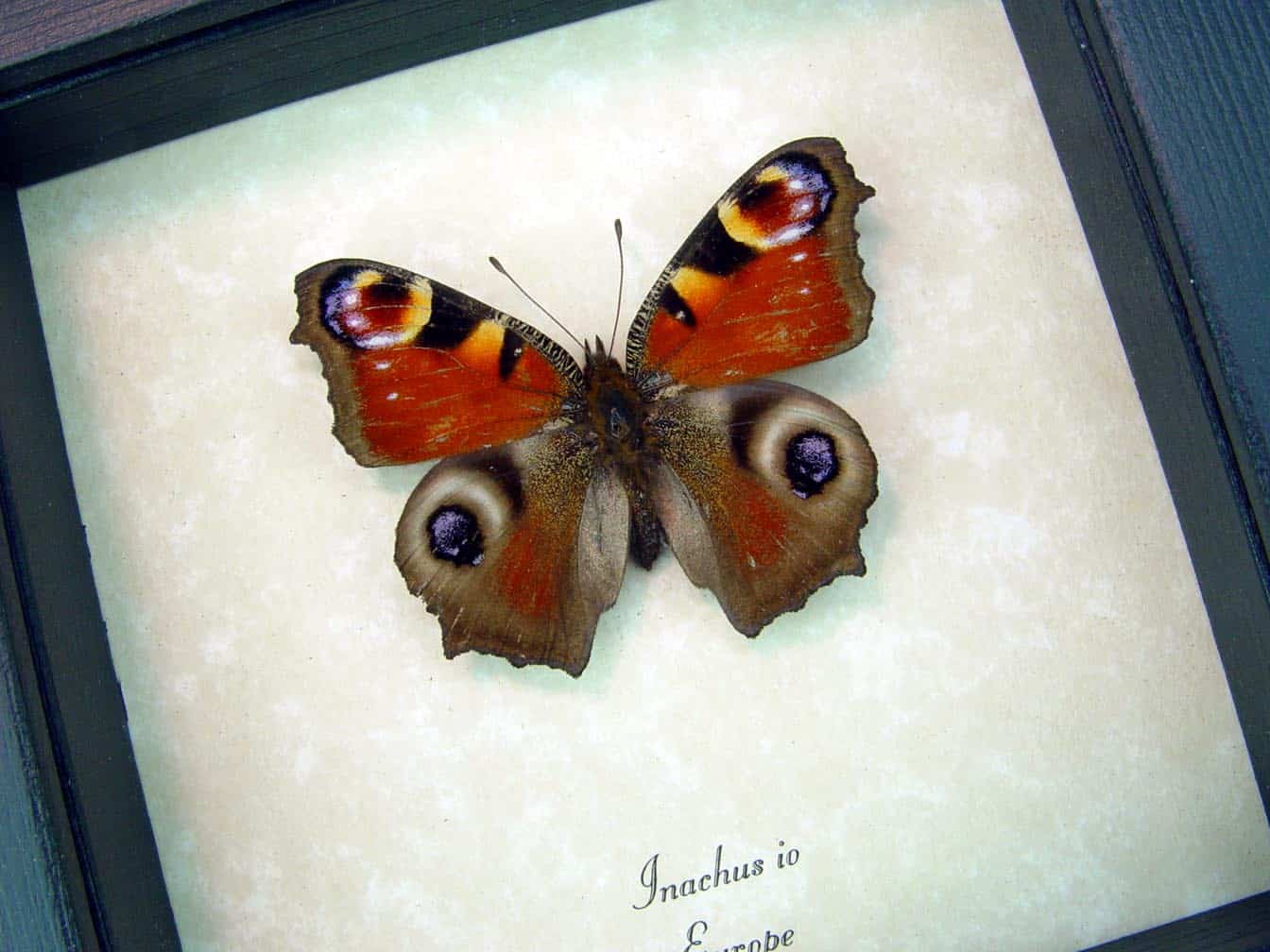 Real Framed Butterfly Inachus aglais io European Peacock Taxidermy Display