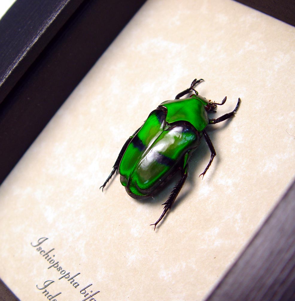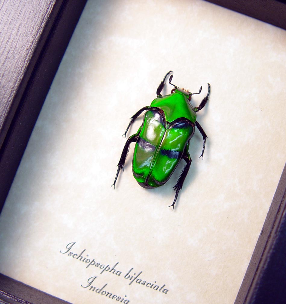 Ischiopsopha bifasciata Green flower Beetle Framed Taxidermy Display ooak