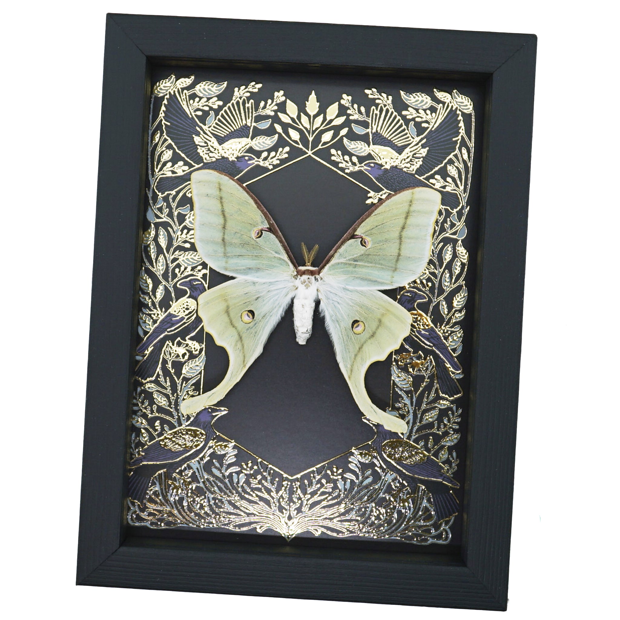 Luna Moth Gold Foil Gothic Ravens Real Framed Actias luna Taxidermy Display