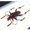 Description: Mastododera lateralis Longhorn Beetle Madagascar Insect . Rare and hard to get Longhorn beetle from Madagascar with a Creepy Red Devil Face pattern on it’s back.