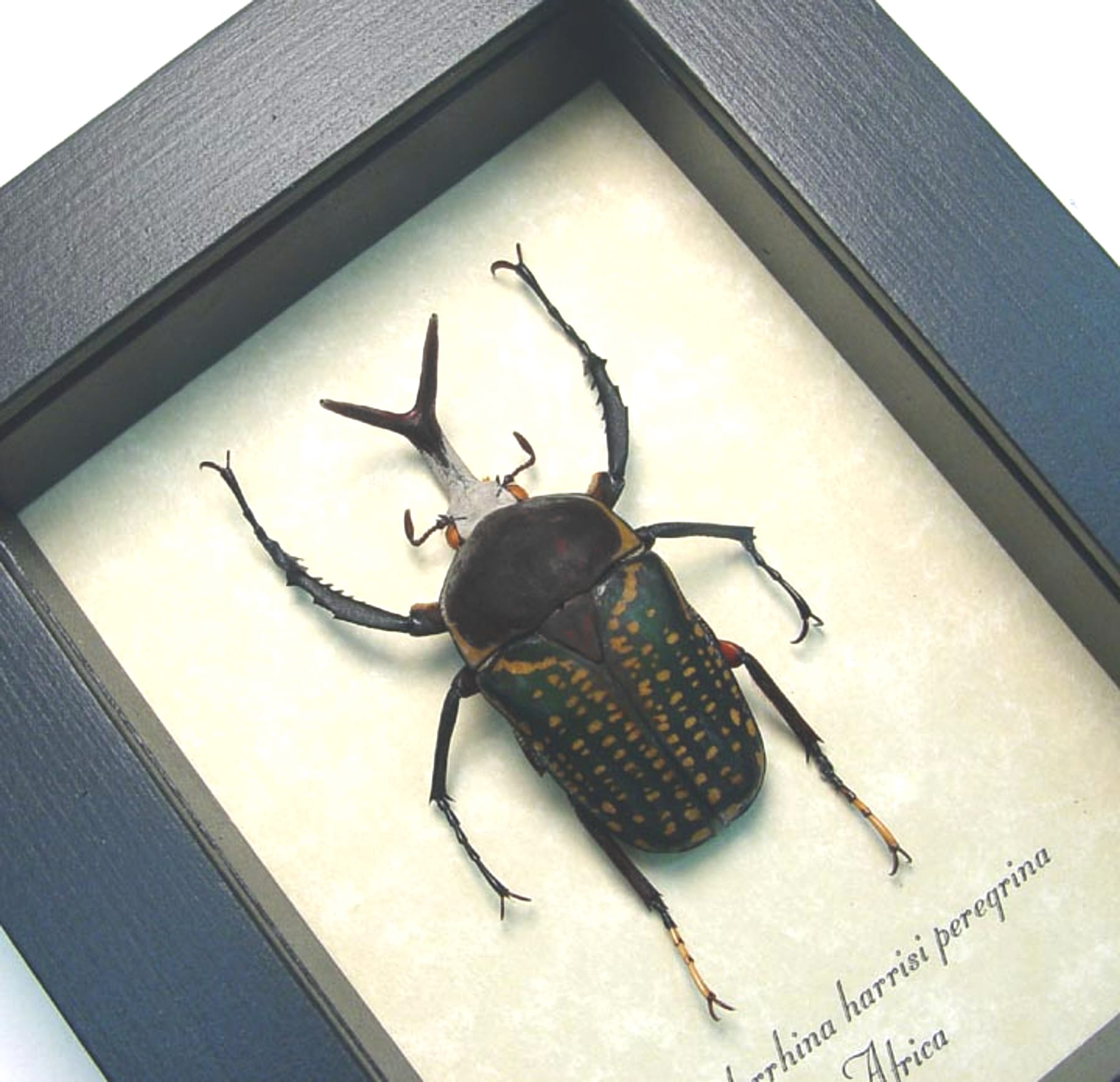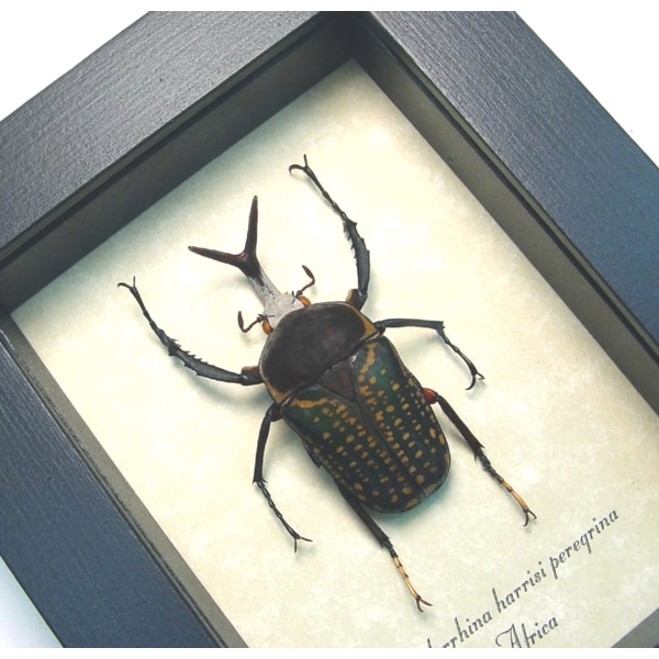 Megalorrhina harrisi peregrina Fork Horned African Beetle Framed Taxidermy Display