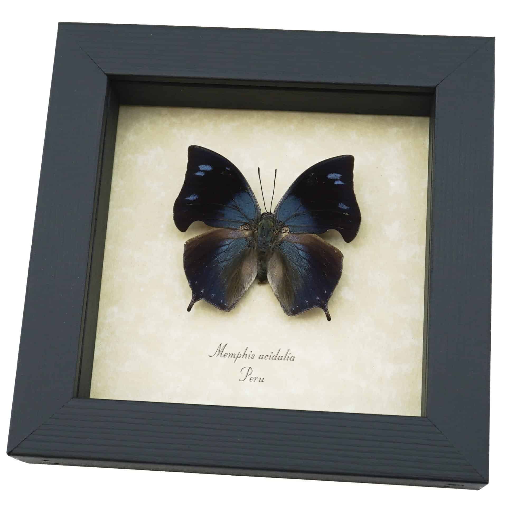 Memphis acidalia Blue Hatchet Wing Framed Butterfly Taxidermy Display