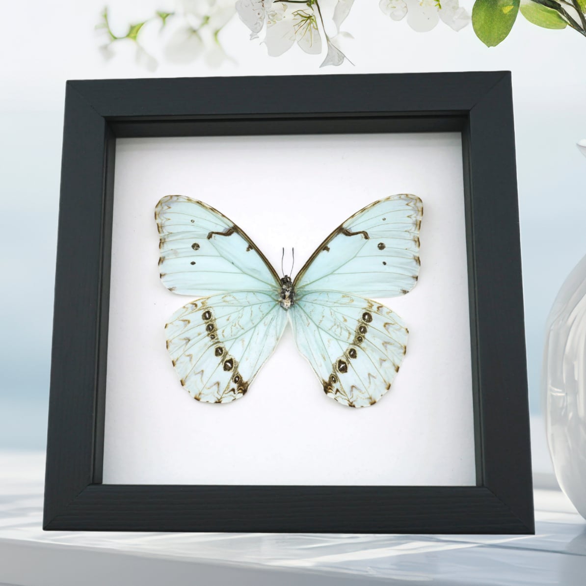 Mint Morpho Butterfly Framed Morpho catenarius Verso Classic Black Display