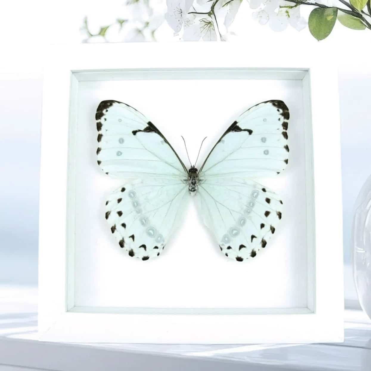Mint Morpho Butterfly Framed Morpho catenarius Vibrant White Display