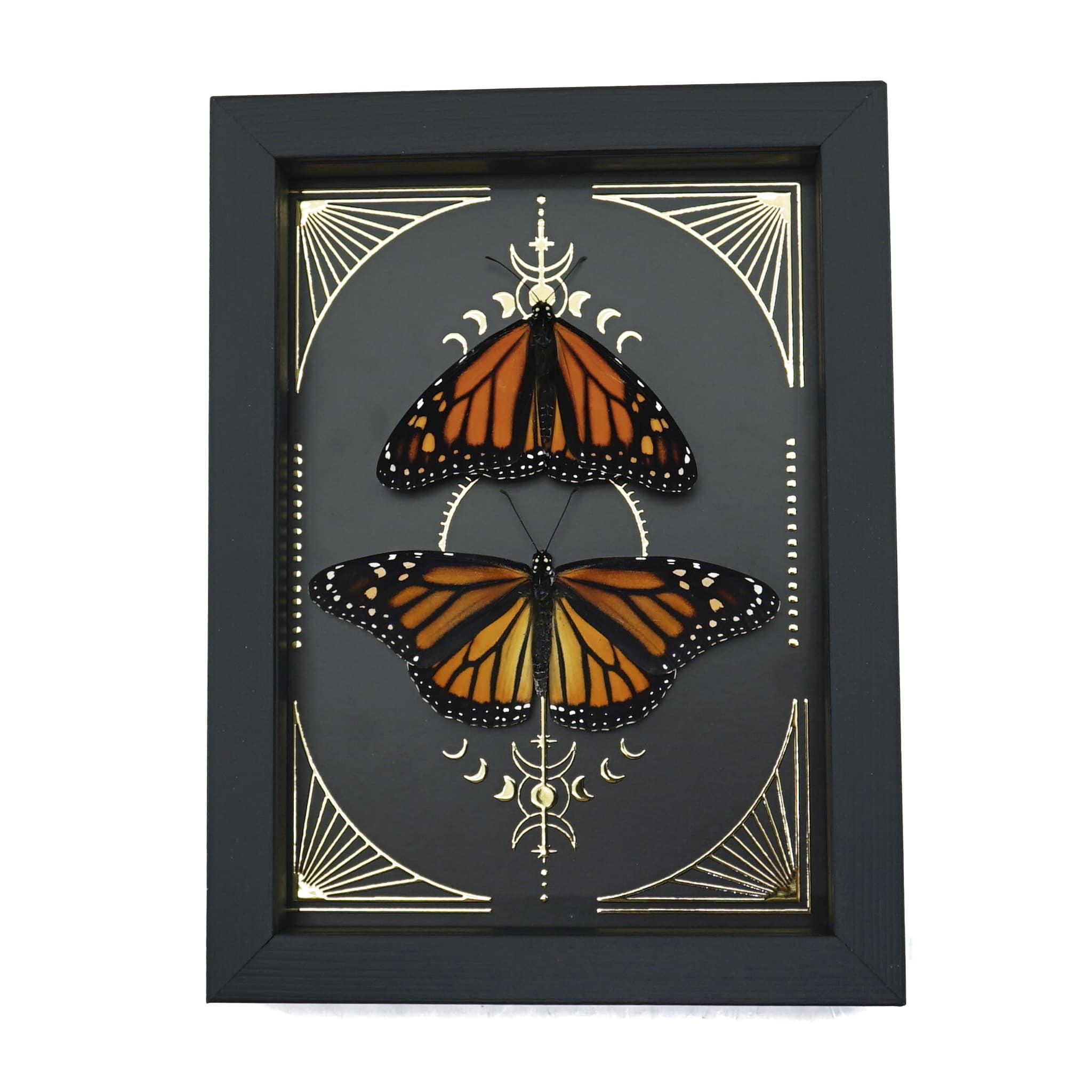 Monarch Butterfly Collection Gold Foil Celestial Moon Phases Danaus Plexippus Pair Framed