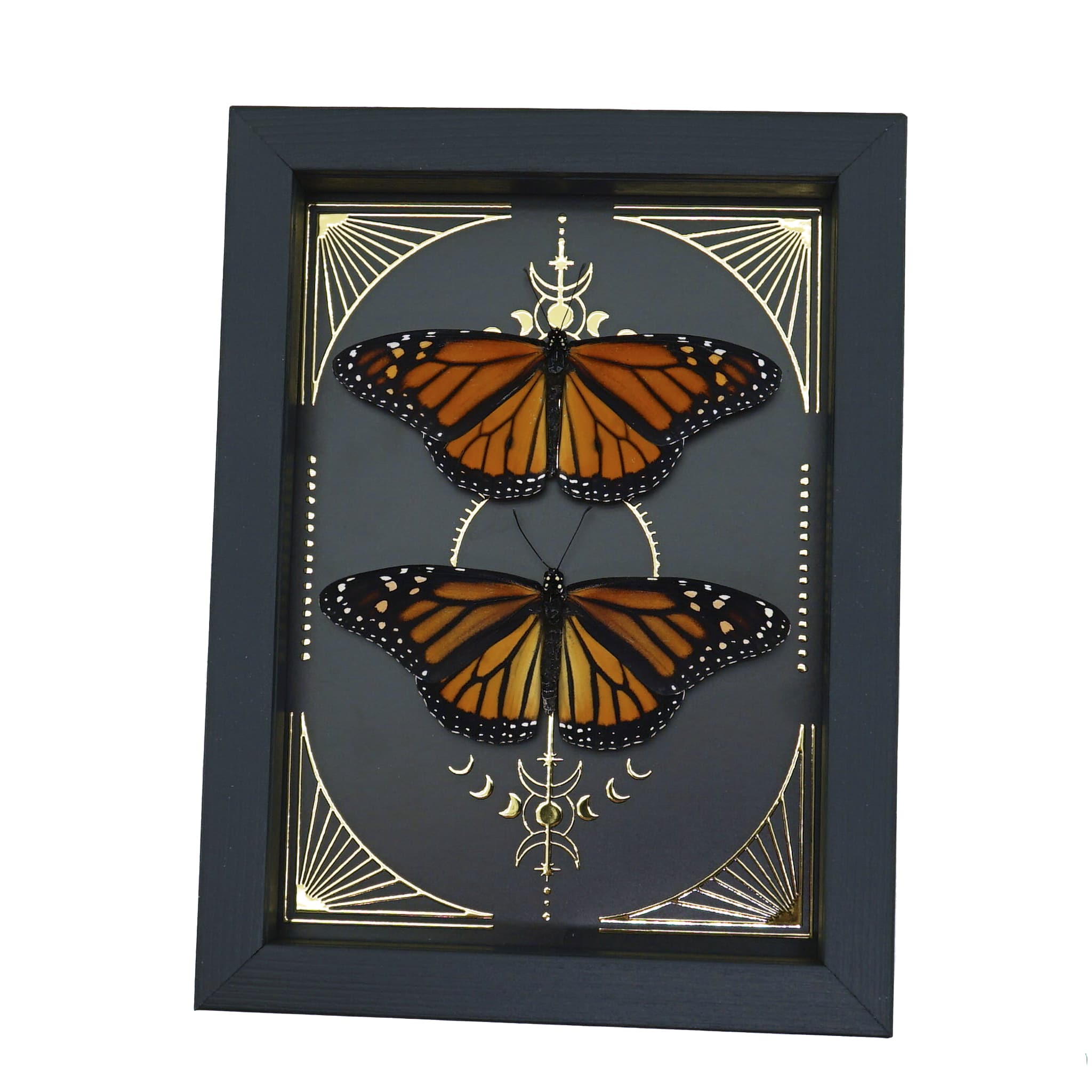 Monarch Butterfly Collection Gold Foil Celestial Danaus Plexippus Pair Framed Taxidermy