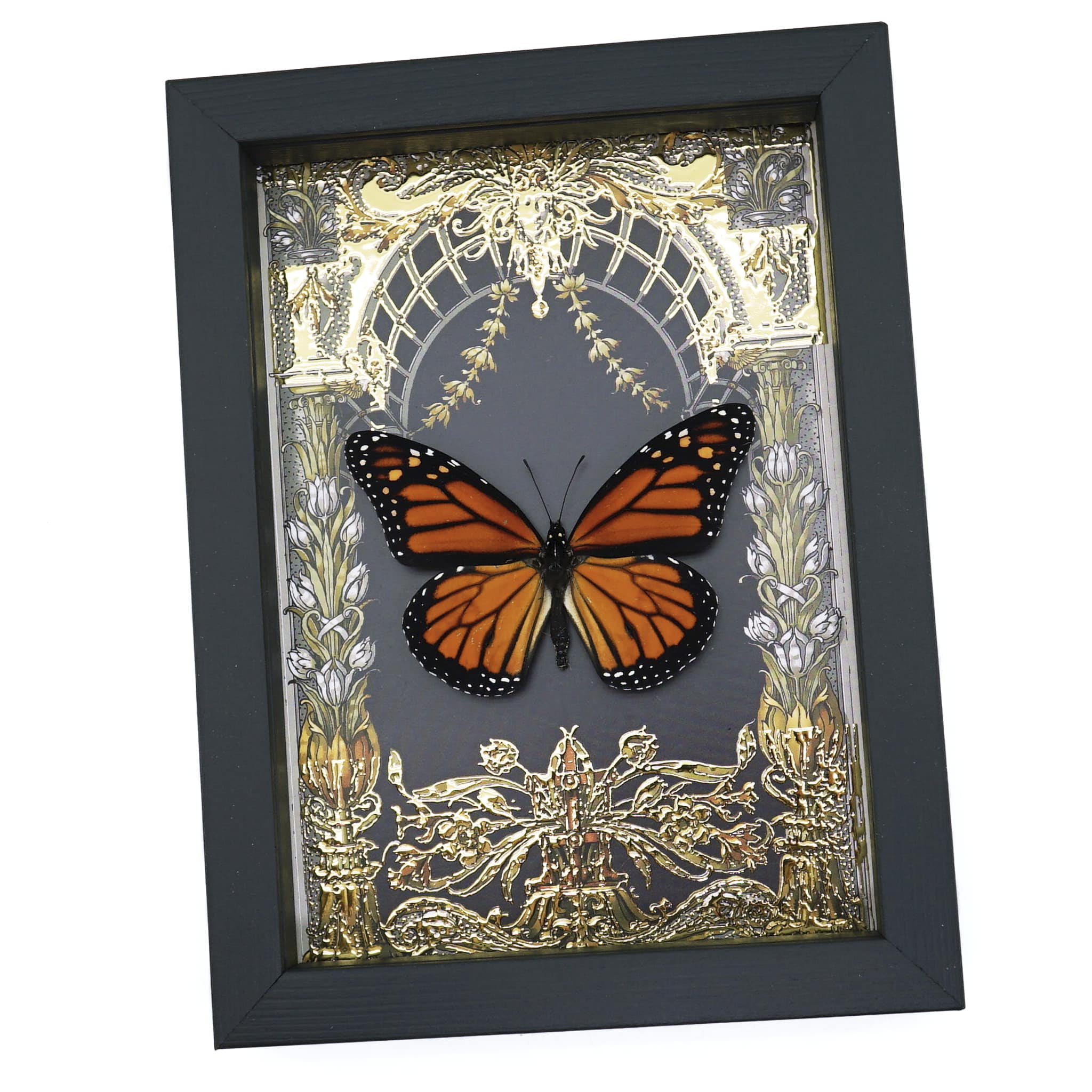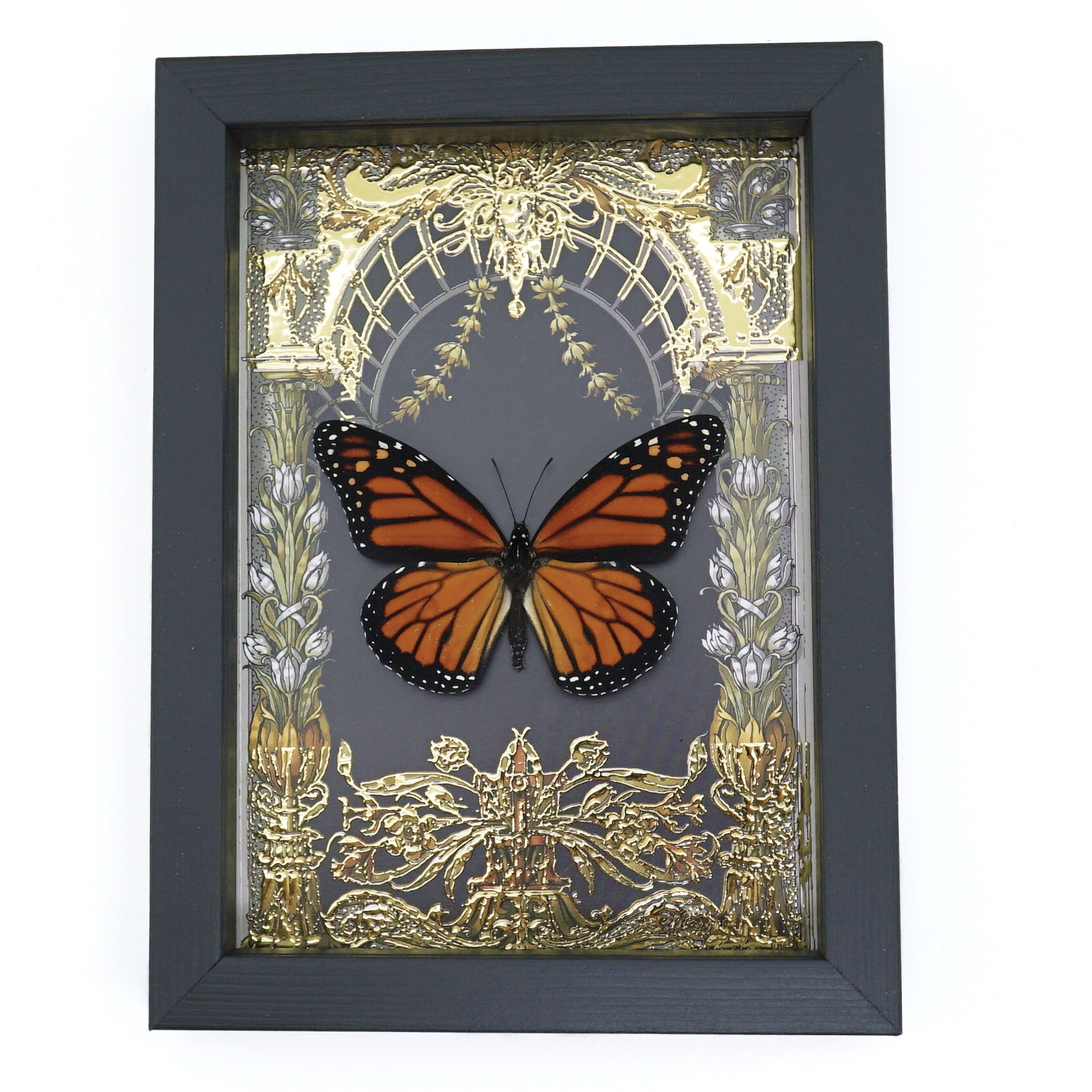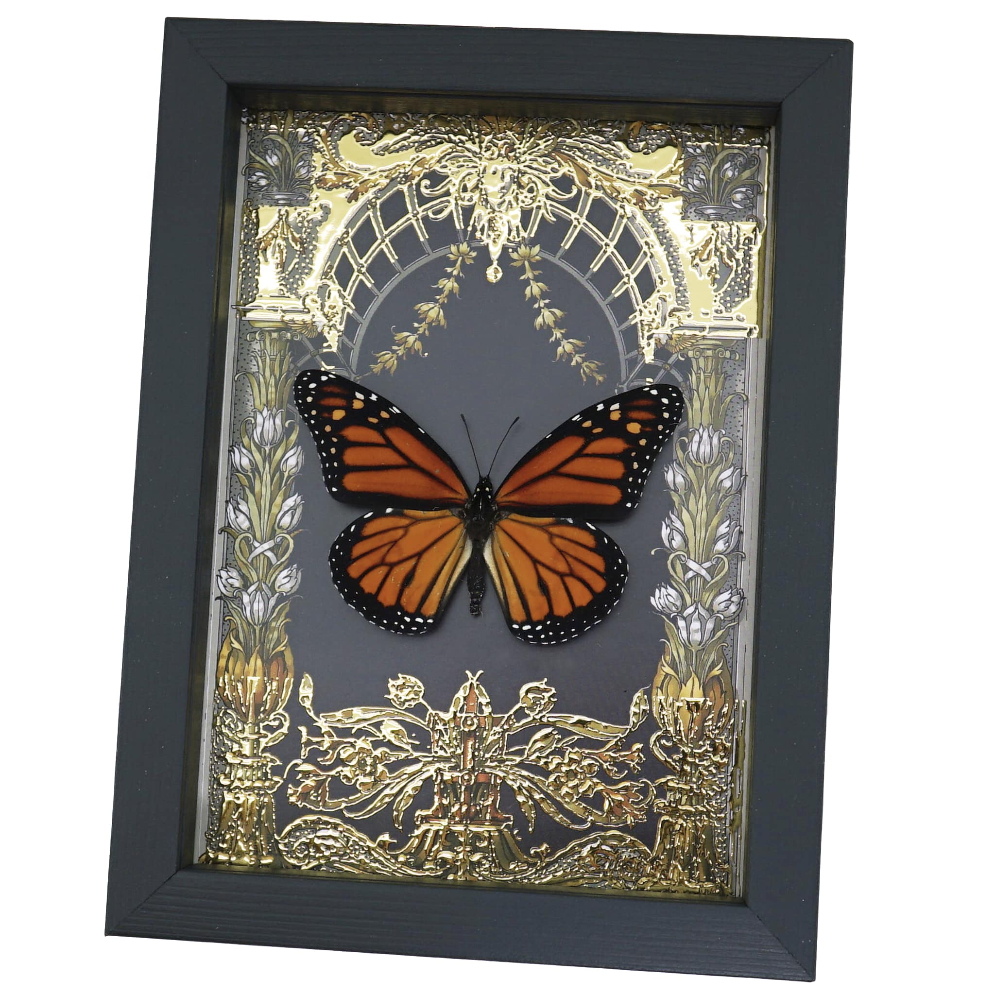 Monarch Butterfly Gold Foil Art Nouveau Garden Danaus Plexippus Male Framed Taxidermy