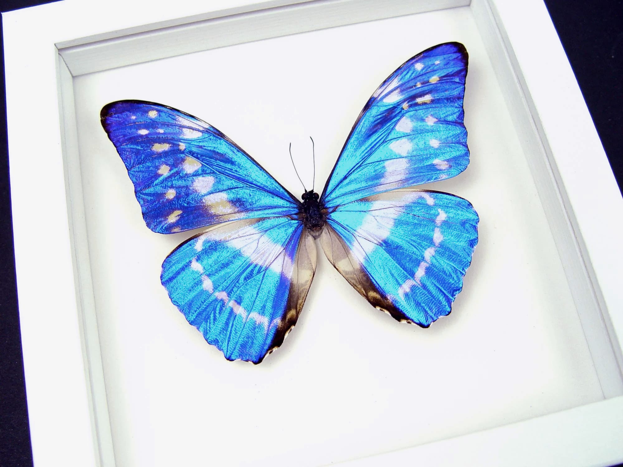 Morpho cypris Blue Morpho Butterfly Vibrant White Display Framed Taxidermy Display