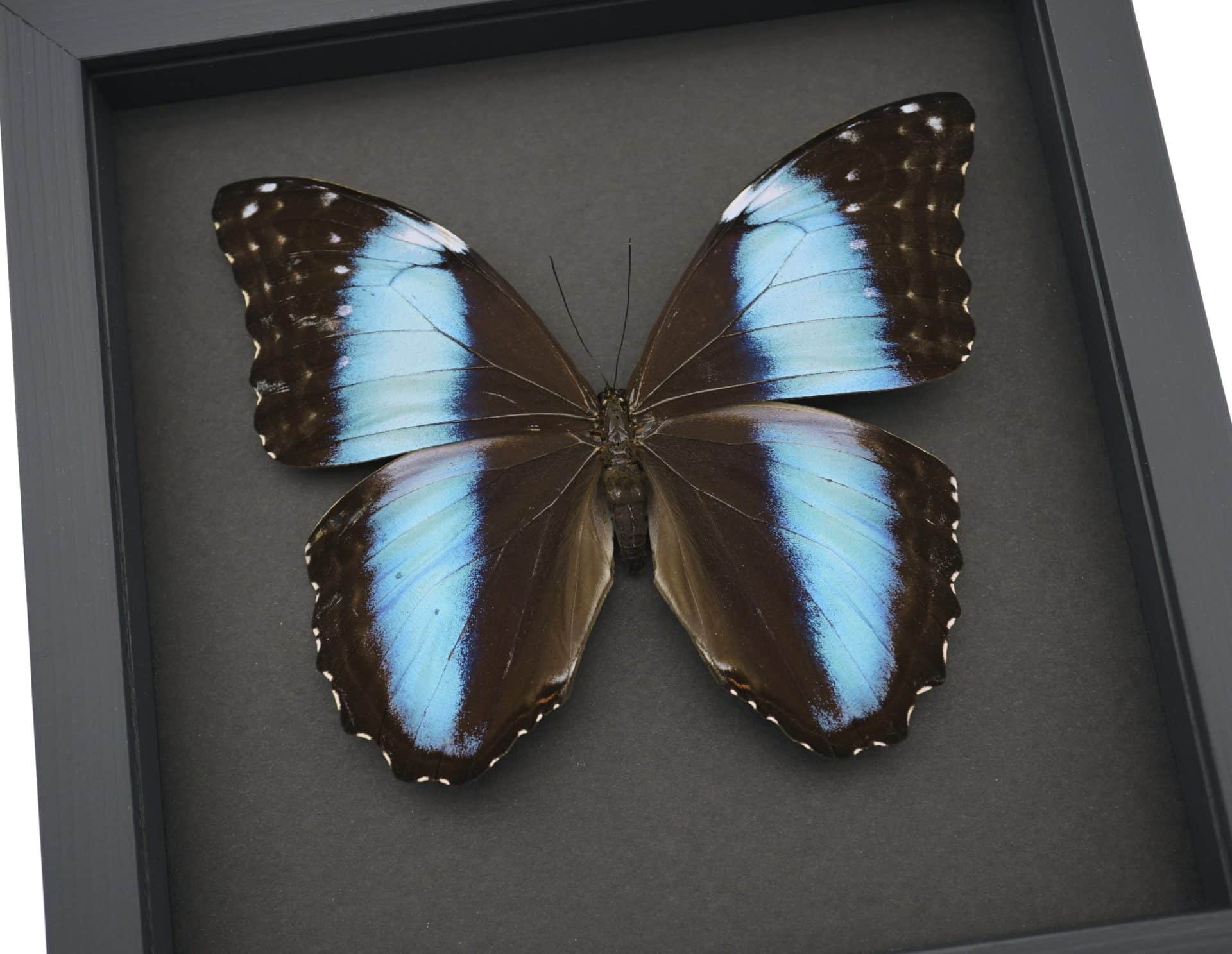 Real Blue Morpho deidamia mariae Female Butterfly Framed Taxidermy Moonlight Display