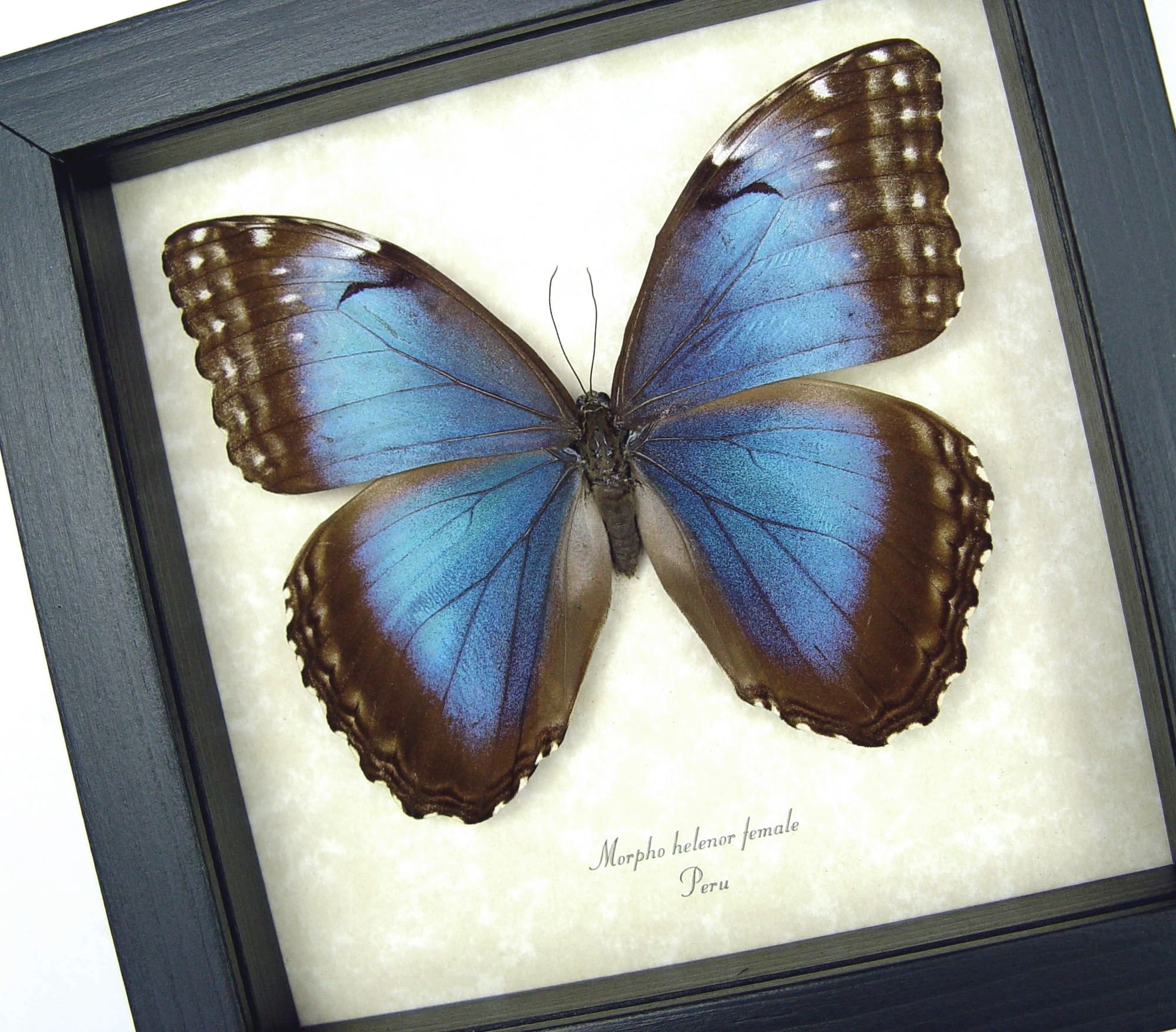 Morpho helenor Female Framed Blue Morpho Butterfly Display