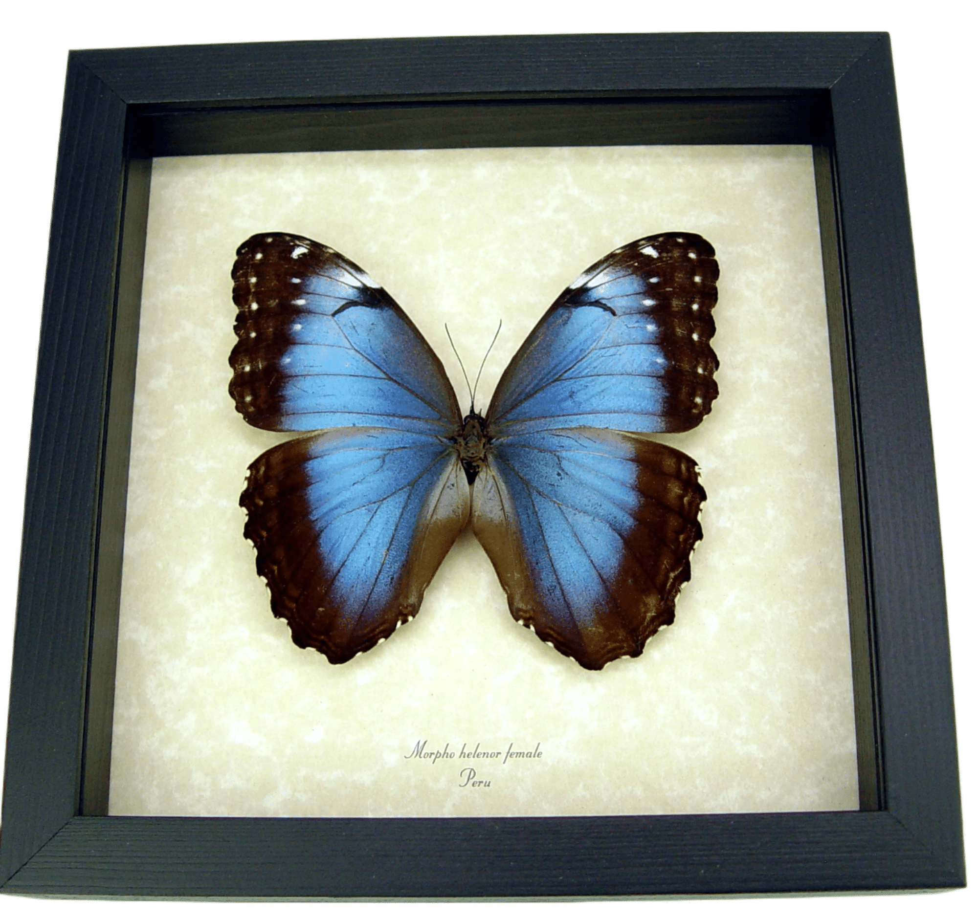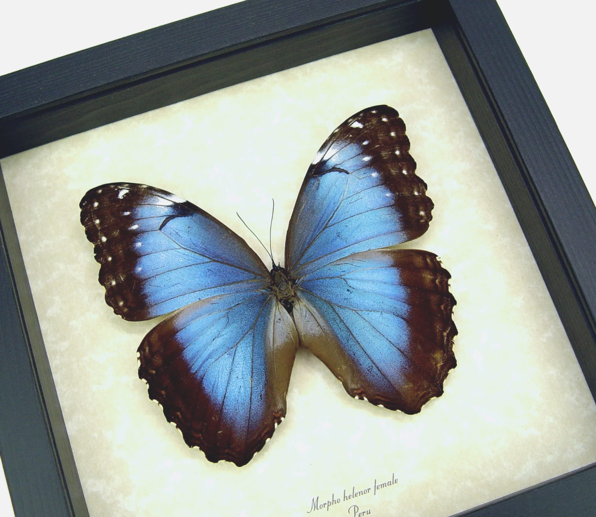 Morpho helenor Female XL Framed Blue Butterfly Taxidermy Display