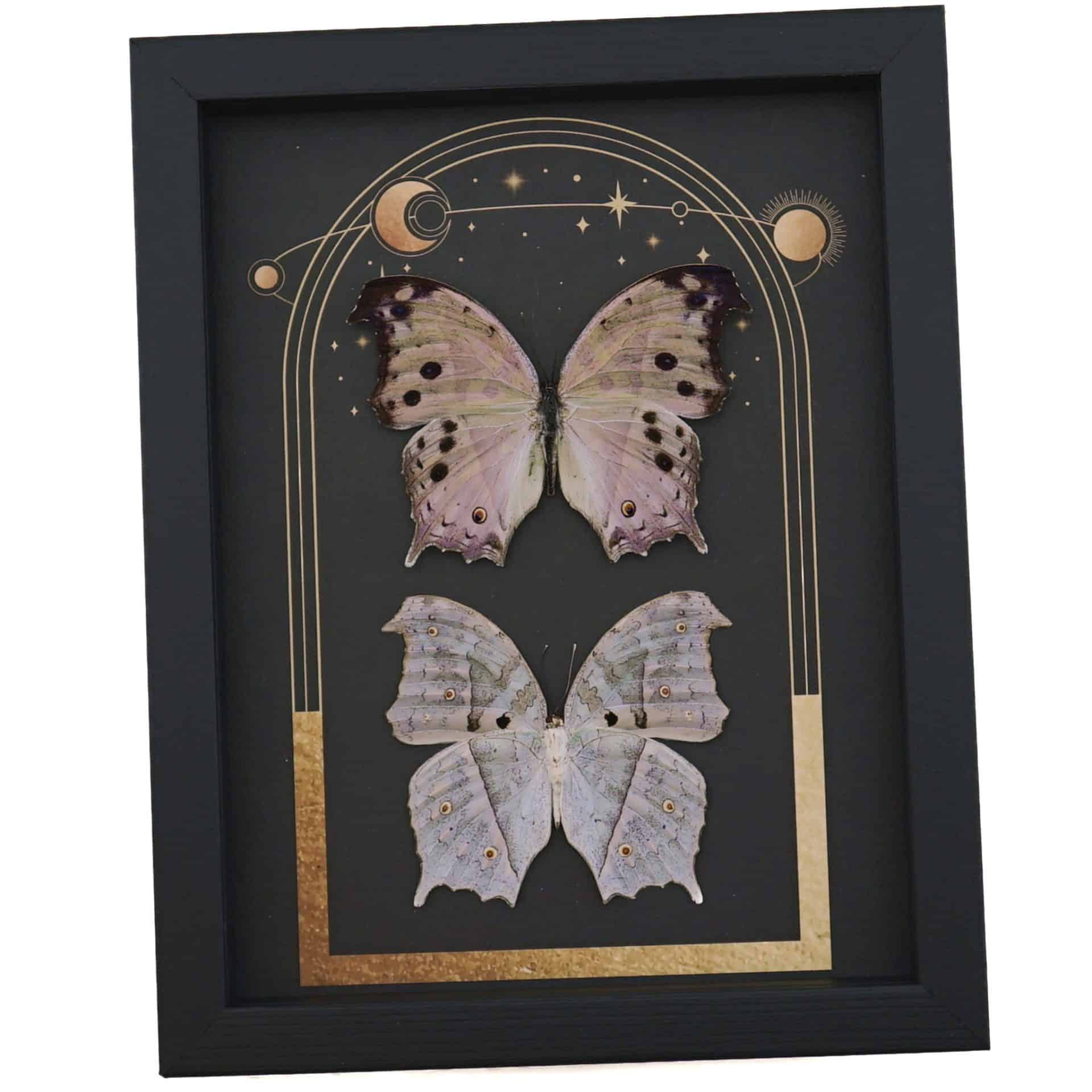 Mother Of Pearl Butterflies Celestial Sun Moon Stars Salamis parhassus Pair Framed Taxidermy Display