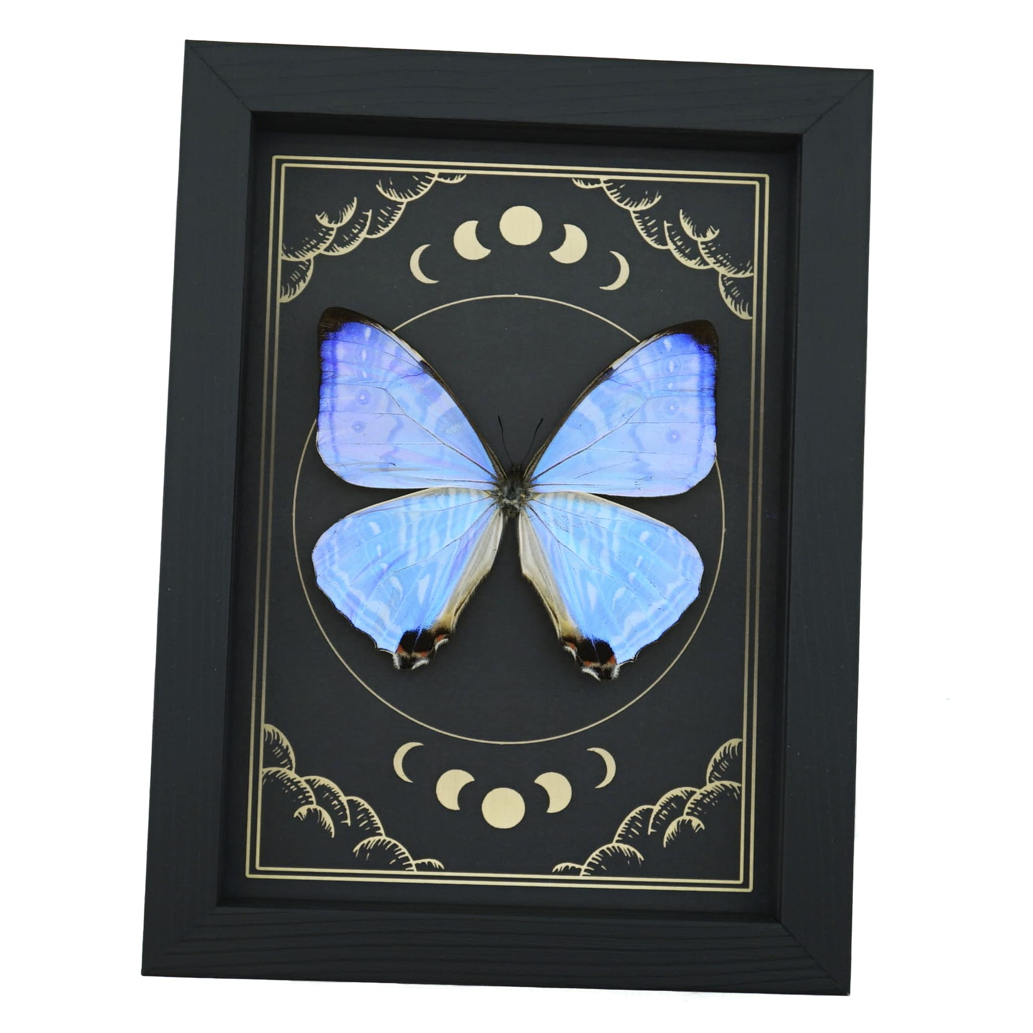 Mother Of Pearl Butterfly Morpho sulkowski Moon Phases Framed Taxidermy Display