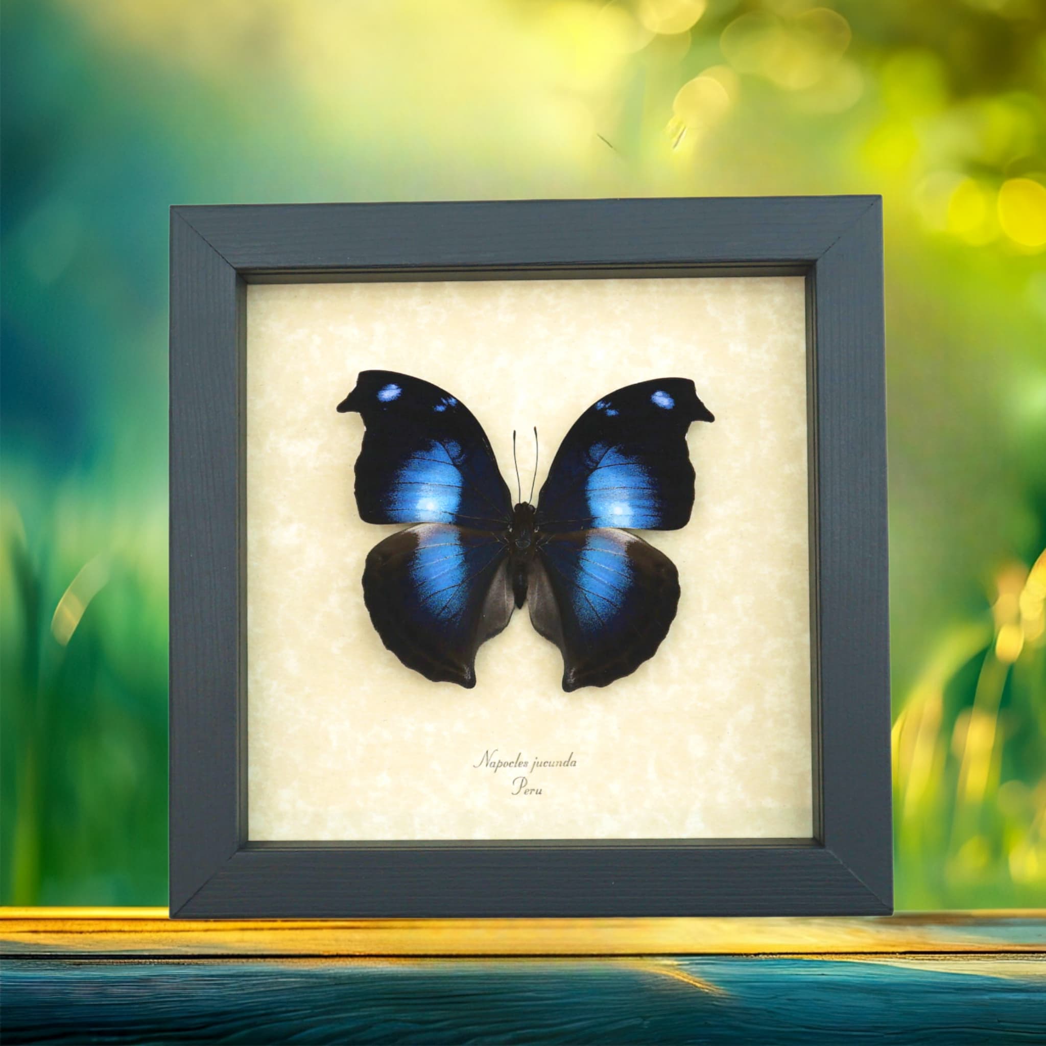 Real Framed Butterfly Blue Moonset Hookwing Napeocles jucunda Taxidermy Display
